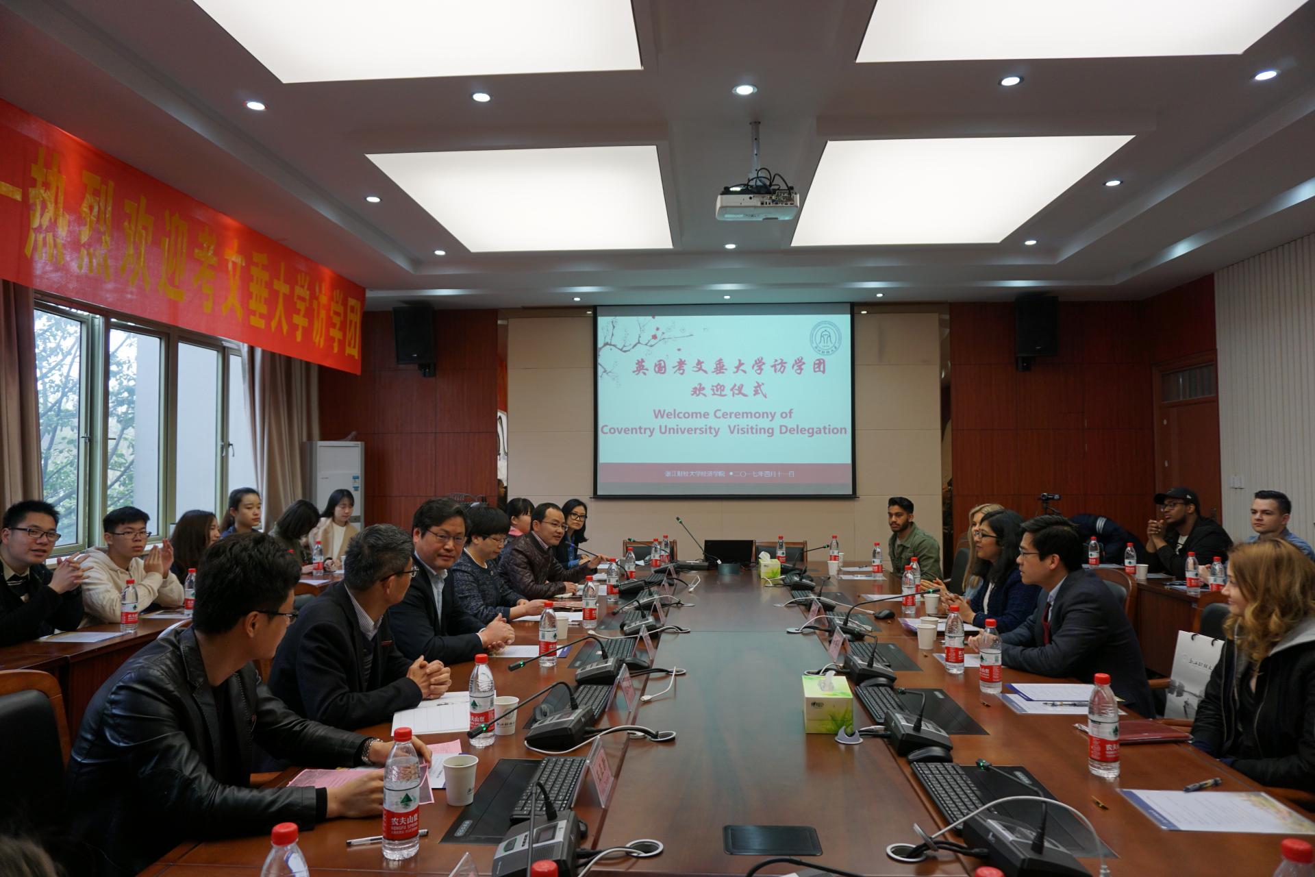 在6号楼210会议室召开了英国考文垂大学访问团师生欢迎仪式。热烈欢迎考文垂大学师生交流团(国贸团)一行20人访问线上赌博平台。国际交流处副处长管春林、线上赌博平台