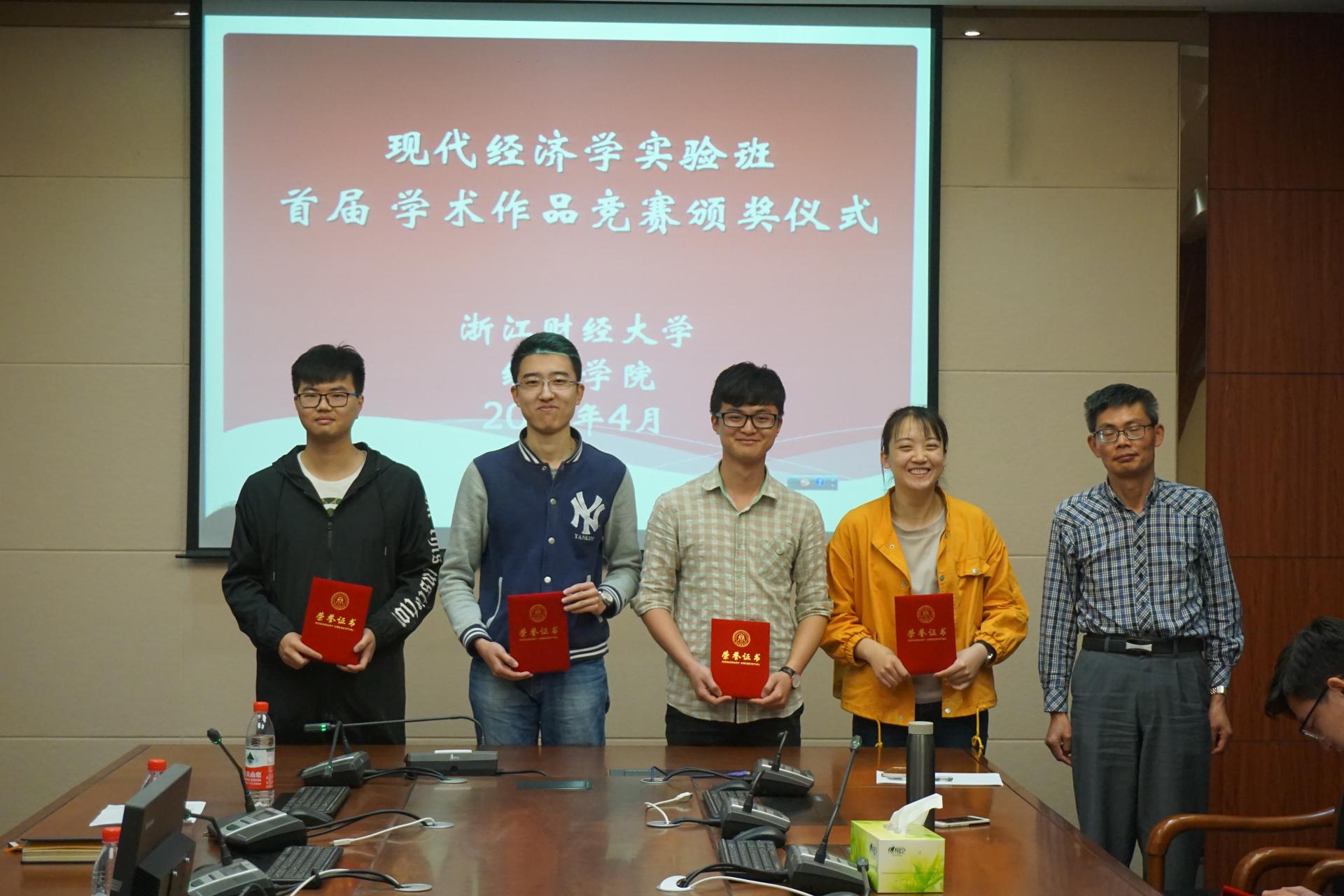 领导班子、历届现代经济学实验班班主任出席颁奖仪式。仪式上,胡亦琴院长对现代经济学实验班的同学们提出,要以学术作品竞赛为起点,树立远大理想,同时脚踏实地,从点滴学习做起,让自己成为具备广博知识与创新能力的拔尖生。