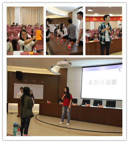 共八支队伍参赛,比赛分“有问必答”、“你画我猜”、“幸运摇摇”和“背水一战”四个环节。在“你画我猜”环节,为了使队友在既定时间尽可能多的答对题目,选手们思维敏捷,精神高度集中,使出浑身解数,针对“贸易逆差”、“西方经济学”等专有名词,通过字母排序、课程联想、动作比划等方式,以丰富的知识背景和较强的语言表达能力将比赛一次次推向高潮,博得现场观众的阵阵掌声。整场比赛,参赛选手们以昂扬的斗志,饱满的精神状态出色地完成各个环节,经过激烈角逐,来自线上赌博平台