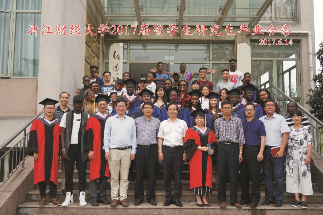 为毕业生们送上了最诚挚的祝福,鼓励同学们走向成功的新起。导师代表茹玉骢教授回顾了毕业生在财大一起学习和研究的历程,并鼓励他们在接下来的工作、学习和生活中继续保持追求真理,并承担起应有的社会责任。毕业生代表MANGANI EDNA和在校研究生代表DIARRA DJENEBOU在发言中对母校的培养表示高度的肯定和感谢。研究生院副院长陈星平宣读学位授予名单,胡亦琴院长、王正新副院长为毕业生颁发学位证书并拨穗。