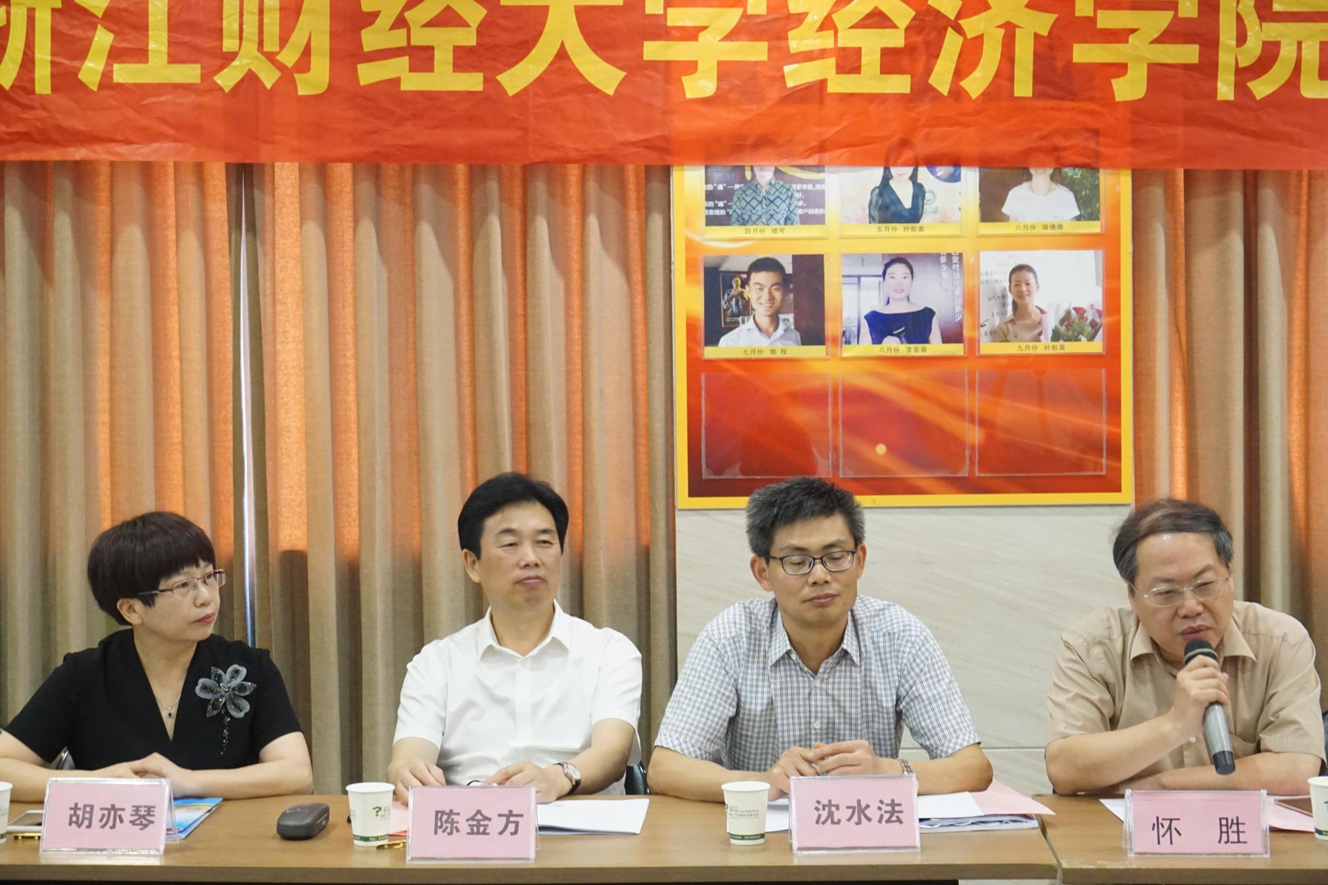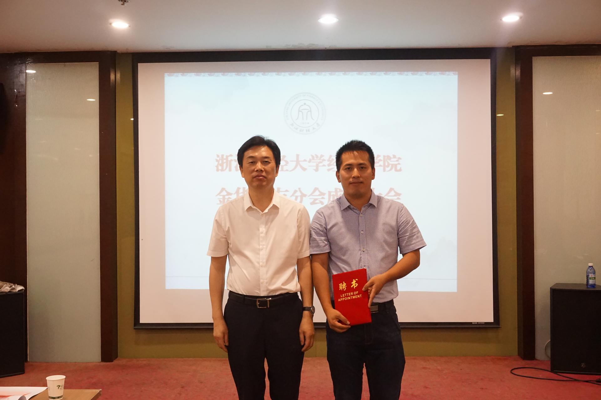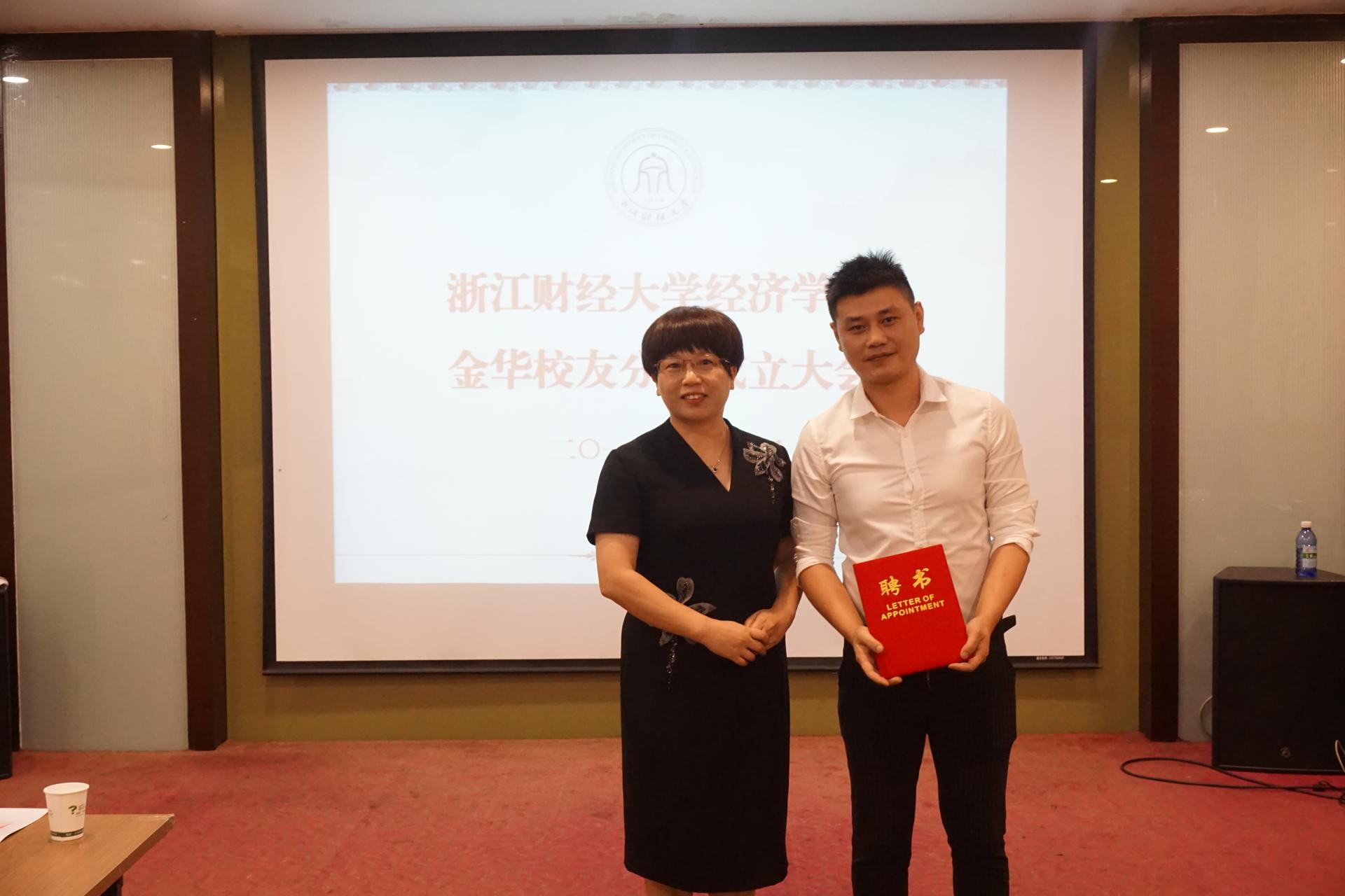 胡亦琴院长为金华校友分会秘书长、副秘书长颁发聘书。金华校友分会会长周云峰发言,他讲述了学生时代他眼中的浙财大,表达了对母校发展的祝贺、对校园生活的眷恋、对母校的感恩和团结力量办好金华校友分会的决心。
