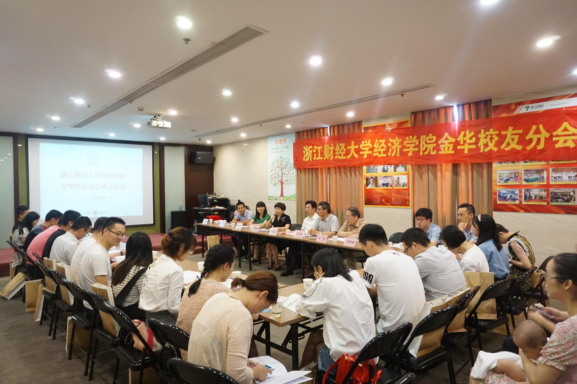 金华校友分会成立大会在义乌隆重召开。校友总会副会长、校纪委书记陈金方、金华校友会秘书长怀胜、院长胡亦琴、党委书记沈水法、党委副书记杨小恩以及在金华学习工作的各界校友30余人出席了本次大会。