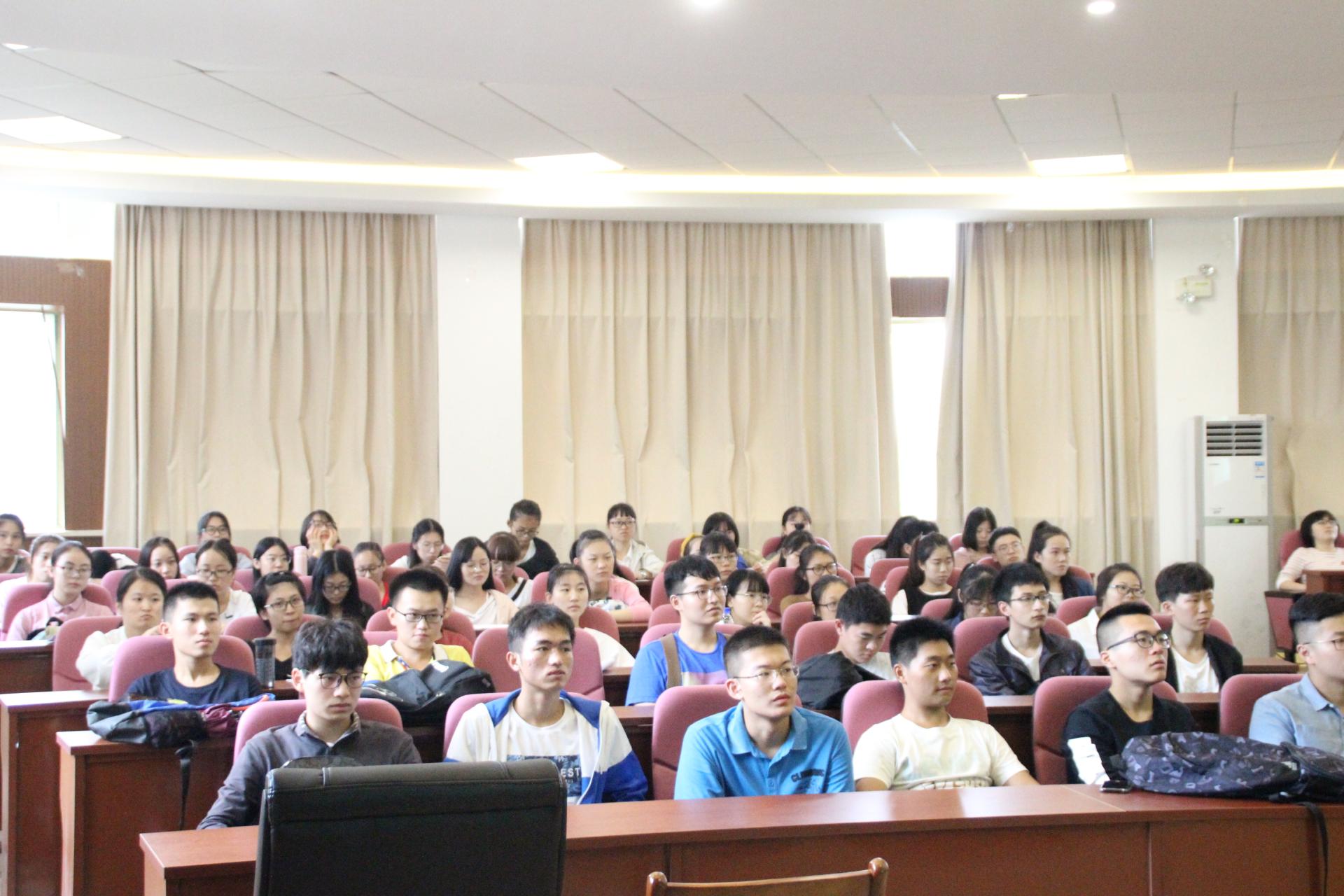 张珊珊学姐以成长、专业、感恩及参与学生活动四个方面为中心,向同学们讲解了大学四年应如何规划,她强调,在有限的时间内,要把专业领域做精,非专业领域要敢于去涉及。最后,学姐引用习近平总书记的“青春不止,奋斗不息”来结束讲说,全场响起热烈的掌声,同学们受益匪浅。随后,崔老师就学姐所说话题又为在场学生重点解释了专业的重要性,让同学们对自己的专业及以后的目标有了更明确的方向。