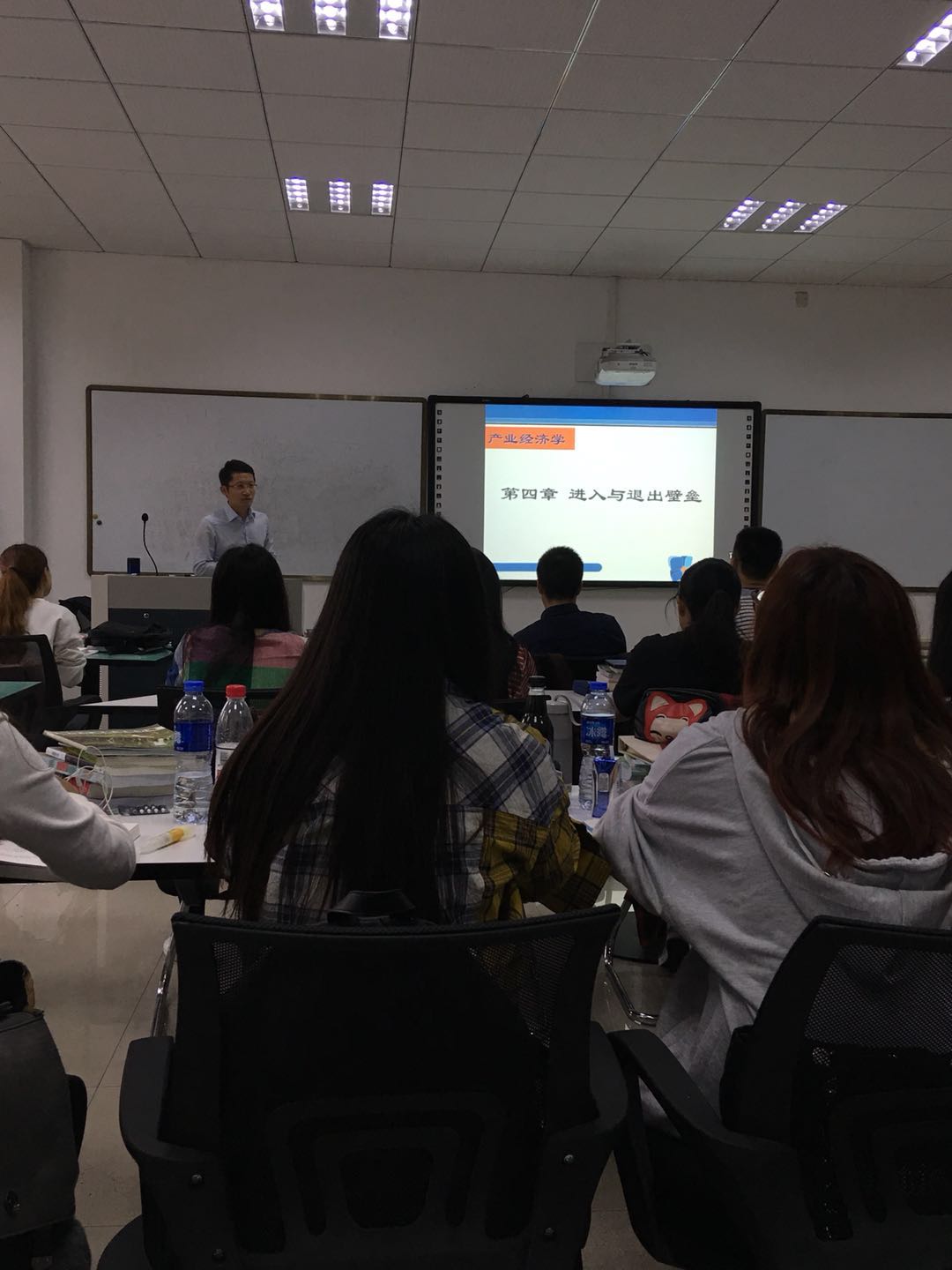 唐要家教授主讲,唐老师以产业组织理论中的“进入与退出壁垒”知识点为例,分享了产业经济学“翻转课堂”的教学设计与教学理念。唐老师教学设计新颖,教学安排合理,深受各位老师的好评,老师们受益颇丰。
