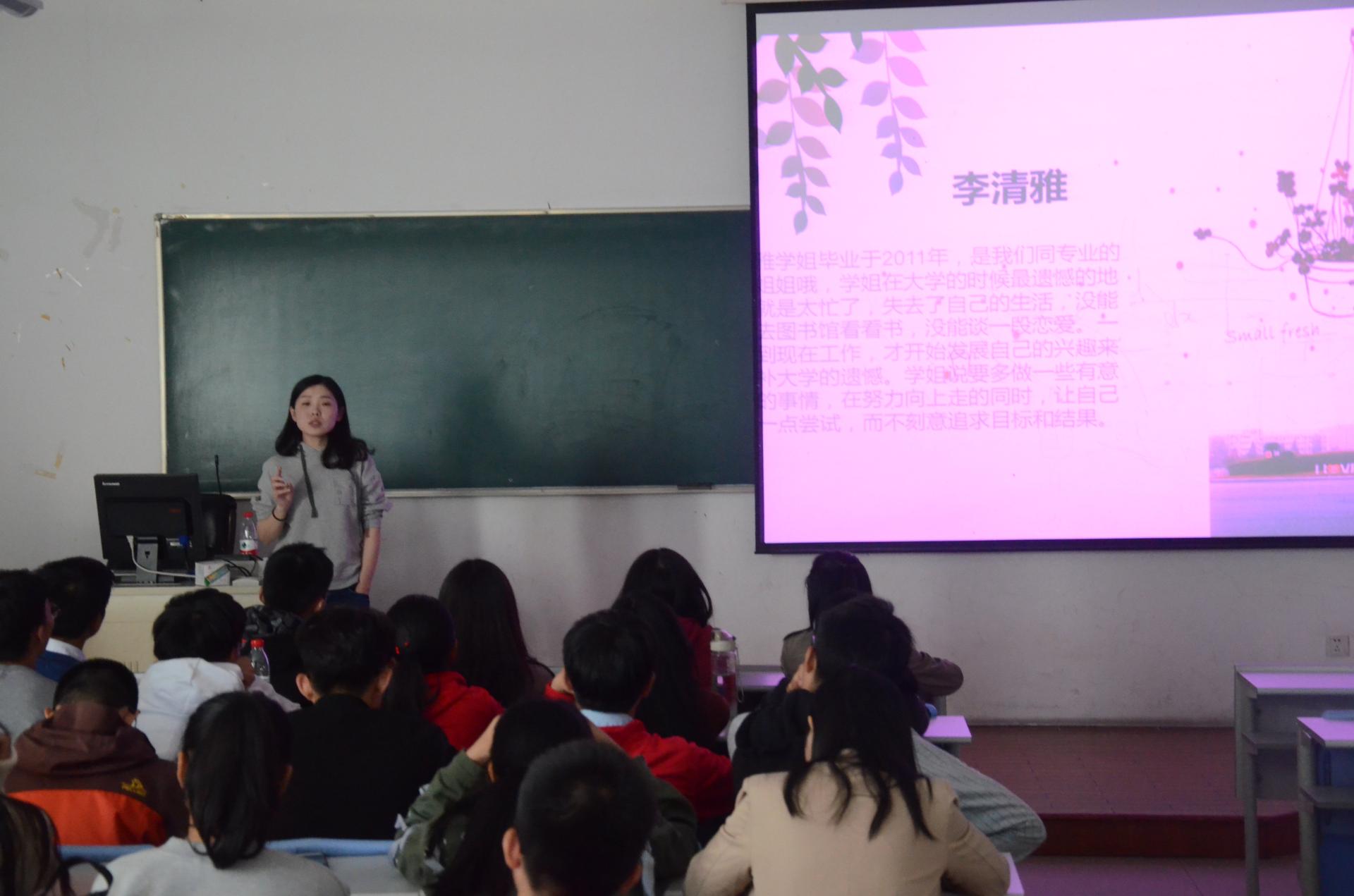 的生活,鼓励同学积极参加社团学生会的活动。她还讲述了自己在美国读研的经历,鼓励大家将眼界放宽些,不要局限于眼前。17国贸3班校友导师则给同学们提了几条建议:要全面发展自我,重视英语,对大学四年的时光有一定的规划。最后,学长讲到,大学是重要的增值期,要好好利用这段时间提升自己。17经济学实验班校友导师则回忆了她考研读博的经过和感想。在互动环节中,学姐十分耐心的回答了同学们的问题,同时告诉同学们,要对自己有清醒的认识,树立清晰的目标,要有意识的督促自己,不要轻易放弃!洪晓燕学姐与经一的同学们的美好相聚,学姐与同学们分享了她在校趣闻,毕业后的工作经历,并在学习的问题上给予了建议。