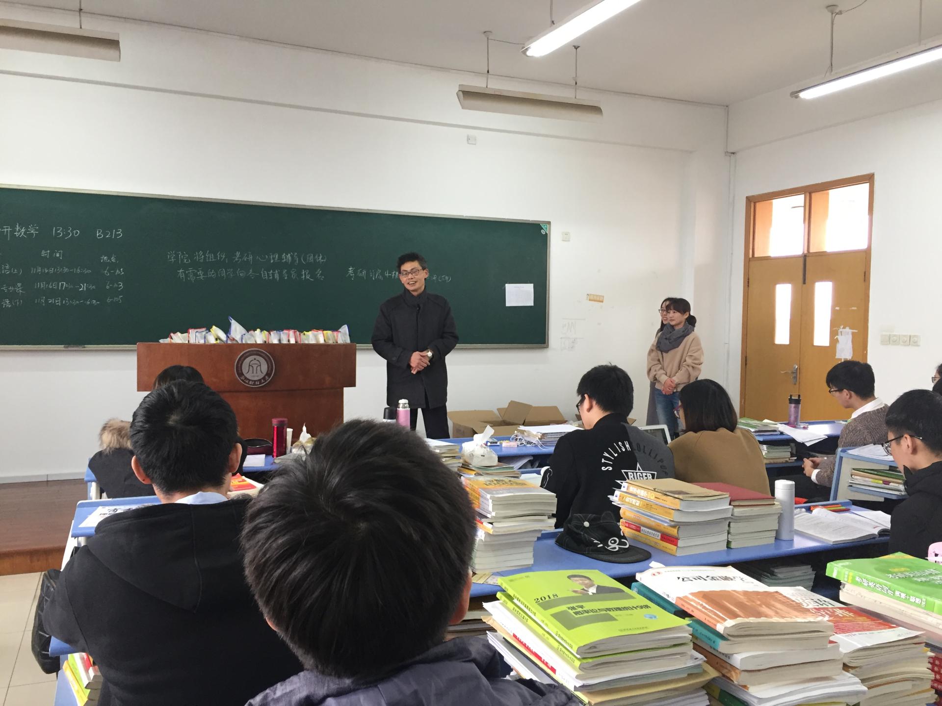 组织考研慰问活动,为考研学生添动力、送祝福。院党委书记沈水法、副书记杨小恩、毕业班辅导员、100余名考研学子参加了慰问活动。