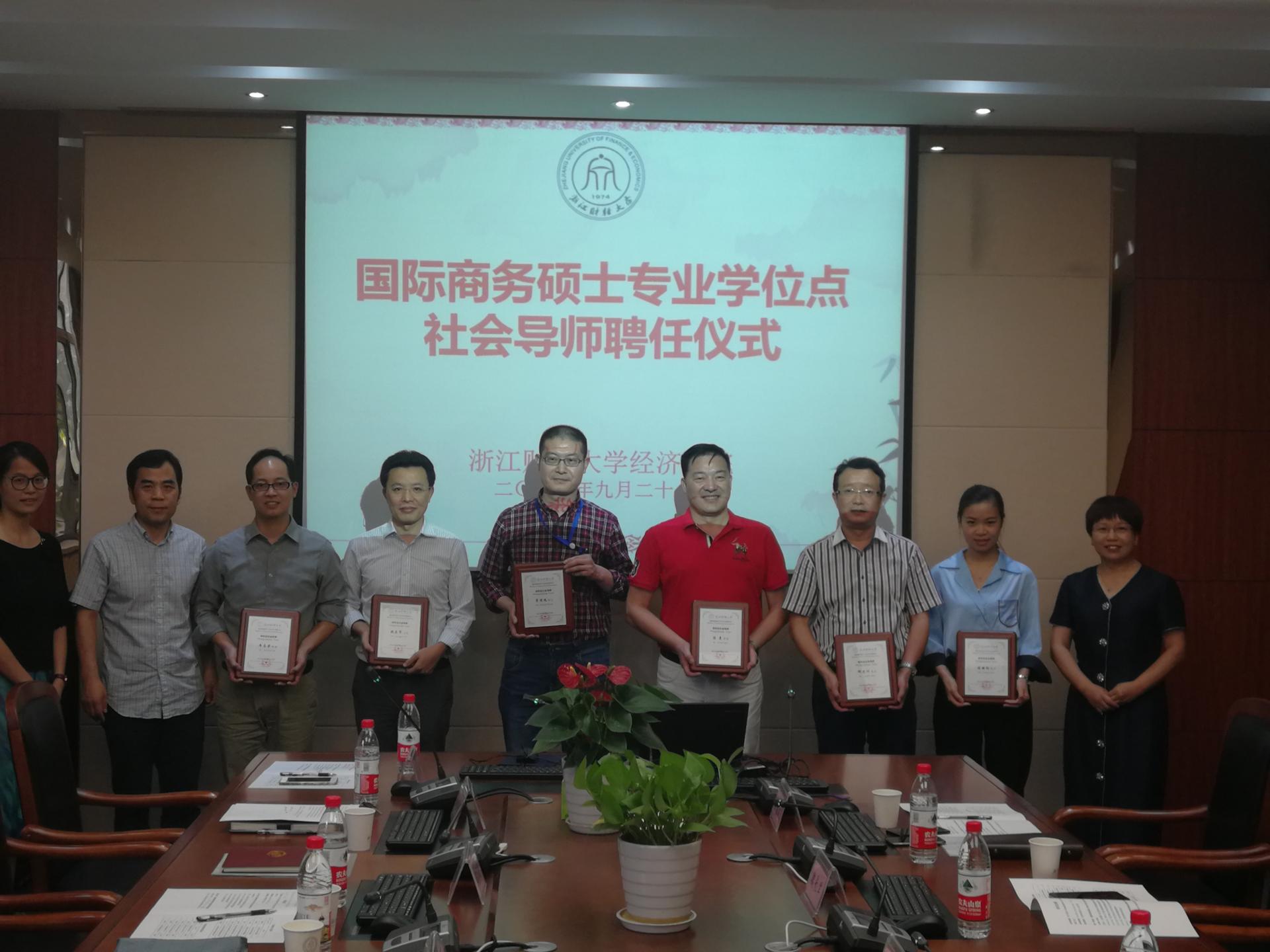 举办国际商务专业硕士社会导师聘任仪式。杭州浙港制衣有限公司董事长陈亮先生、汇孚集团有限公司总经理邵龙河先生、浙江大华技术股份有限公司总经理廖志荣先生、浙江米娜纺织有限公司总经理魏长军先生、喜沃商品(中国)有限公司CEO常思远先生、浙江复聚投资管理有限公司总经理周丽红女士等社会导师代表,线上赌博平台