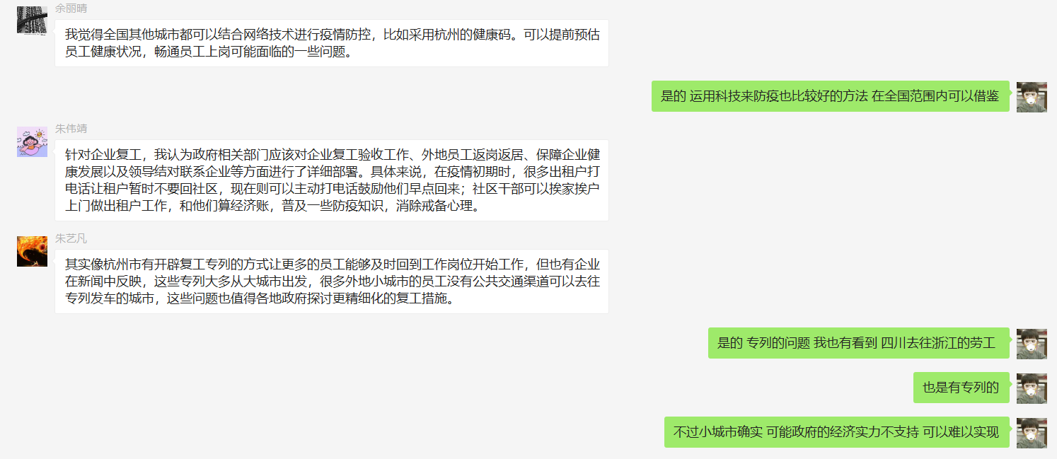 疫情发生后,本科生第二党支部学生党员以制作短视频的形式贡献微薄之力。这其中包括围绕疫情防控的科普知识“预防小贴士”,“武汉加油,中国加油”手指舞视频等。视频虽然短小,但传递出了满满的正能量,鼓舞人心。针对疫情当下毕业生就业与升学压力,情绪不稳定的情况,本科生第三党支部学生党员积极与身边同学分享就业与升学信息,保持乐观心态,理性思考,相互鼓励,共同前行,发挥学生党员先锋模范作用。疫情中各界校友为防疫工作作出了自己的贡献,本科生第五党支部就结合“校友+”特色,以“共同战‘疫’,经济校友在行动”为主题,挖掘经济校友在抗疫中的感人故事,进行报道并交流讨论,表达对在一线战“疫”的工作人员的敬意和感恩。