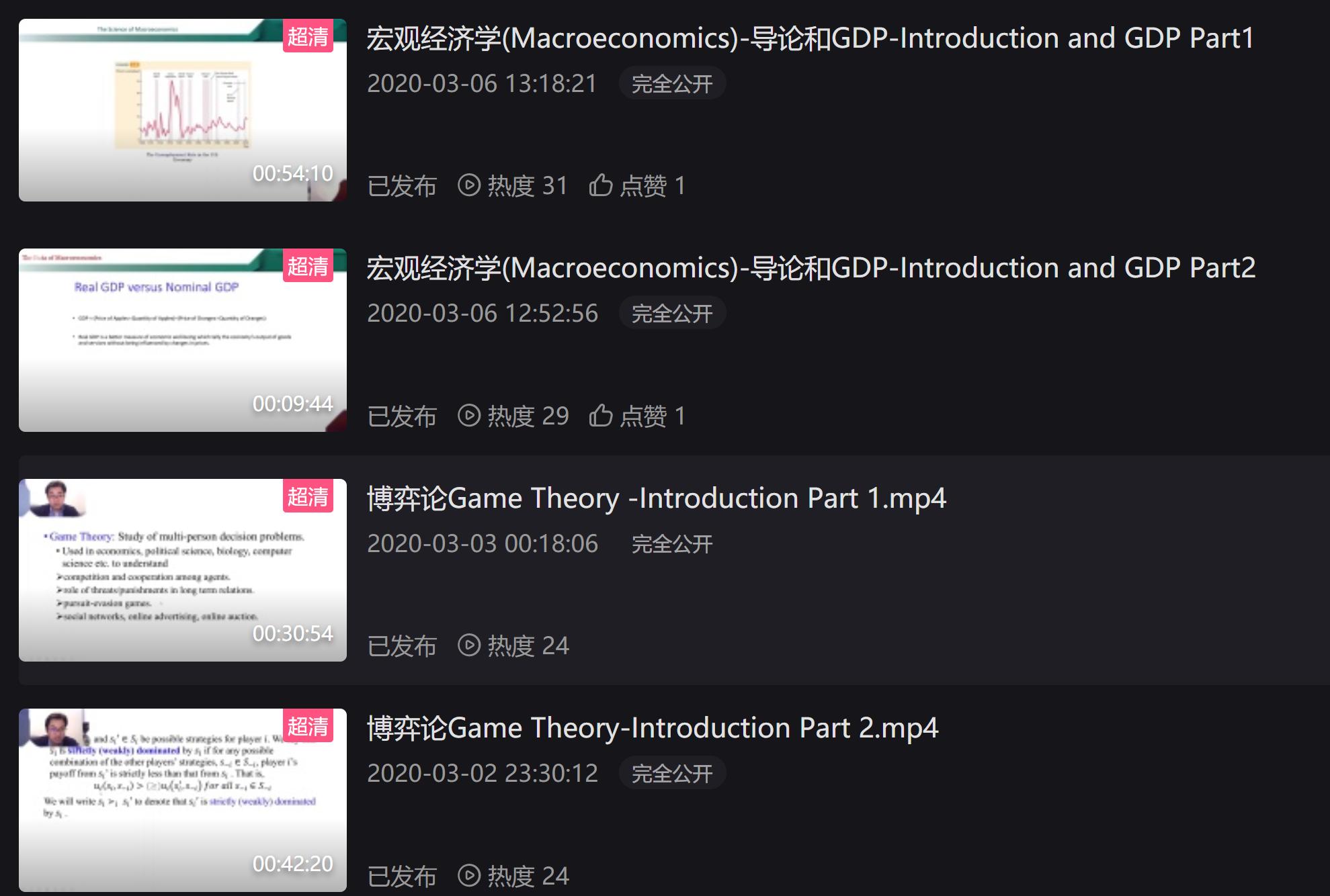 而《博弈论(双语)》是针对已经有相当经济学专业基础的大三学生,所以涉及较多的模型推导与解析,因此在线上讲授的过程中,辅以电子板书形式,让同学对模型的细节能有更深的体会。