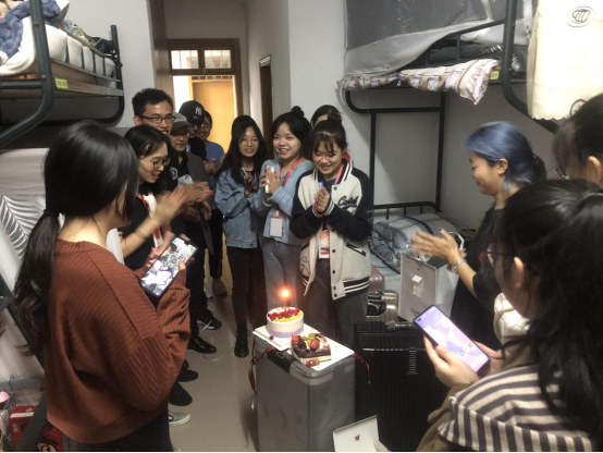 迎新当天,正值王思奇、赵芮萱两位同学的生日。晚8时许,新生班主任、辅导员与班导们来到宿舍,与他们同庆生日,并送上寄语。在温馨美好,欢声笑语的氛围中,新同学们与老师的心更近了,对未来的经院生活也更加期待向往。