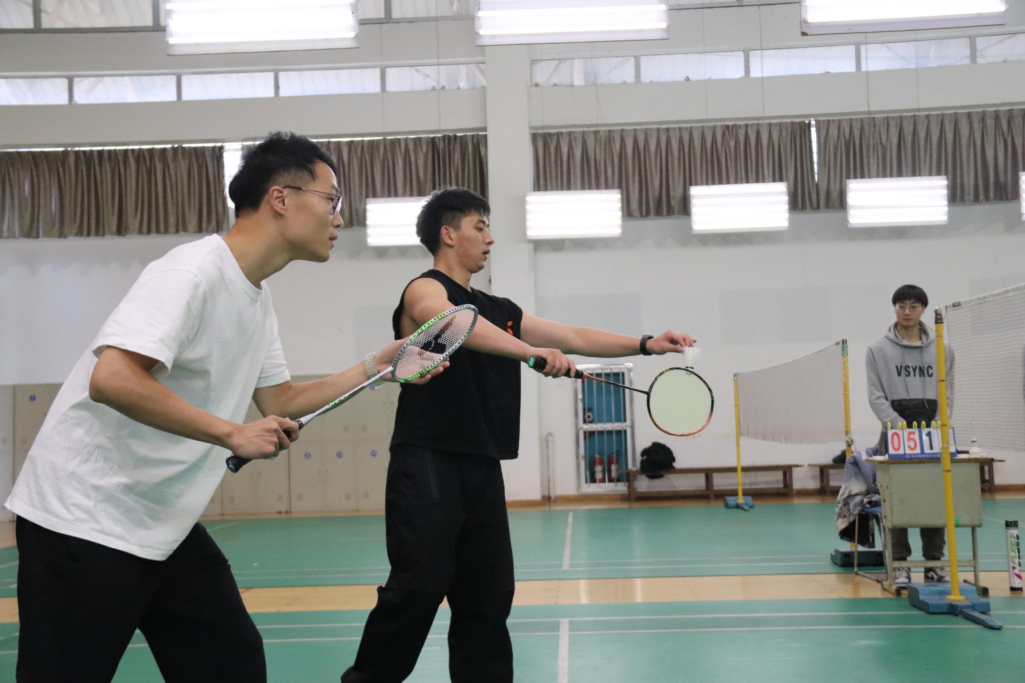 此次比赛设有男子双打、女子双打和混合双打三个项目,采用21分一局淘汰制。比赛的过程可谓是精彩纷呈、高潮迭起。同学们之间配合默契,老师们也充分运用其娴熟的技巧、凭借其丰富的经验贡献了一个个精彩的回合。