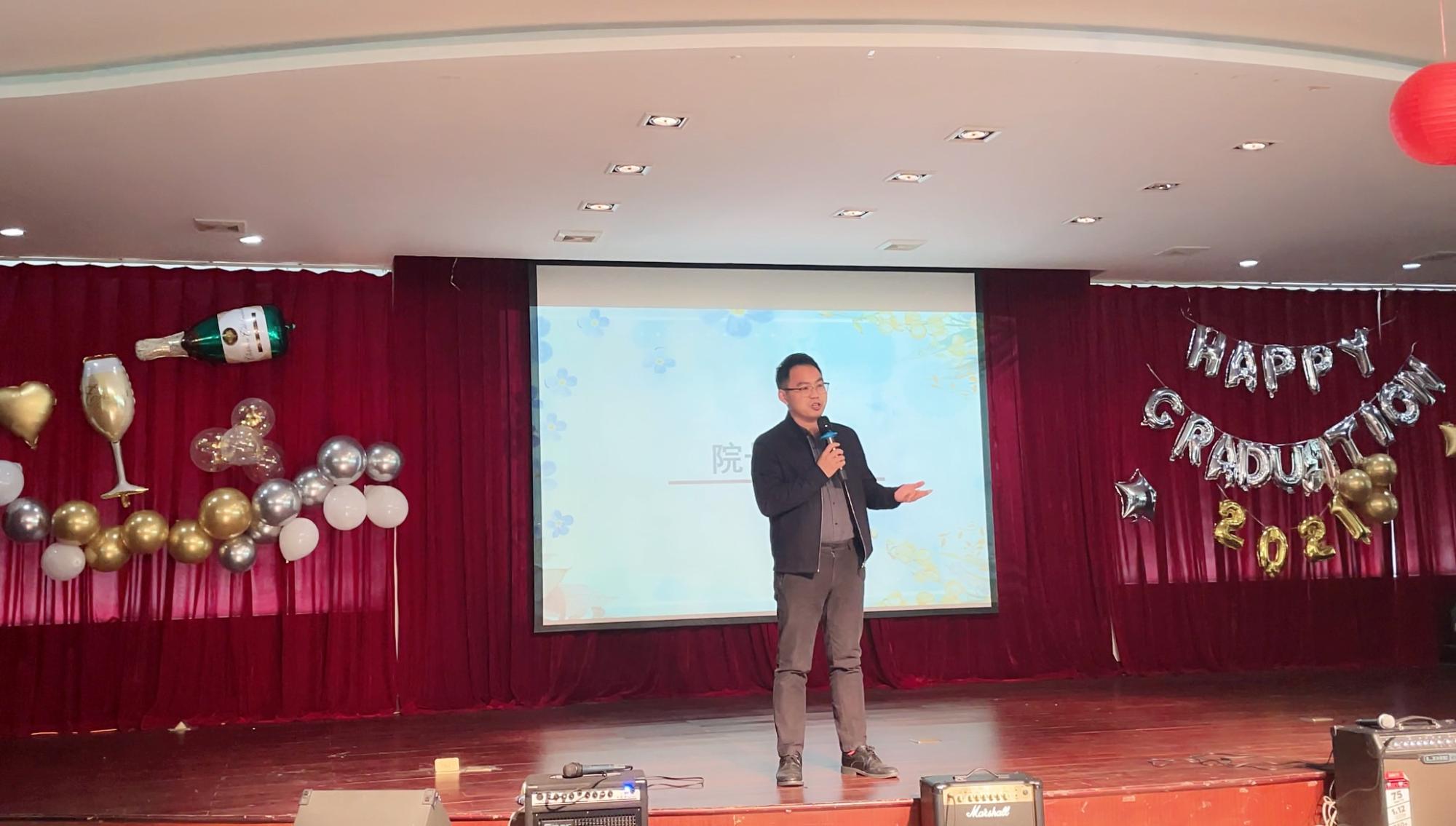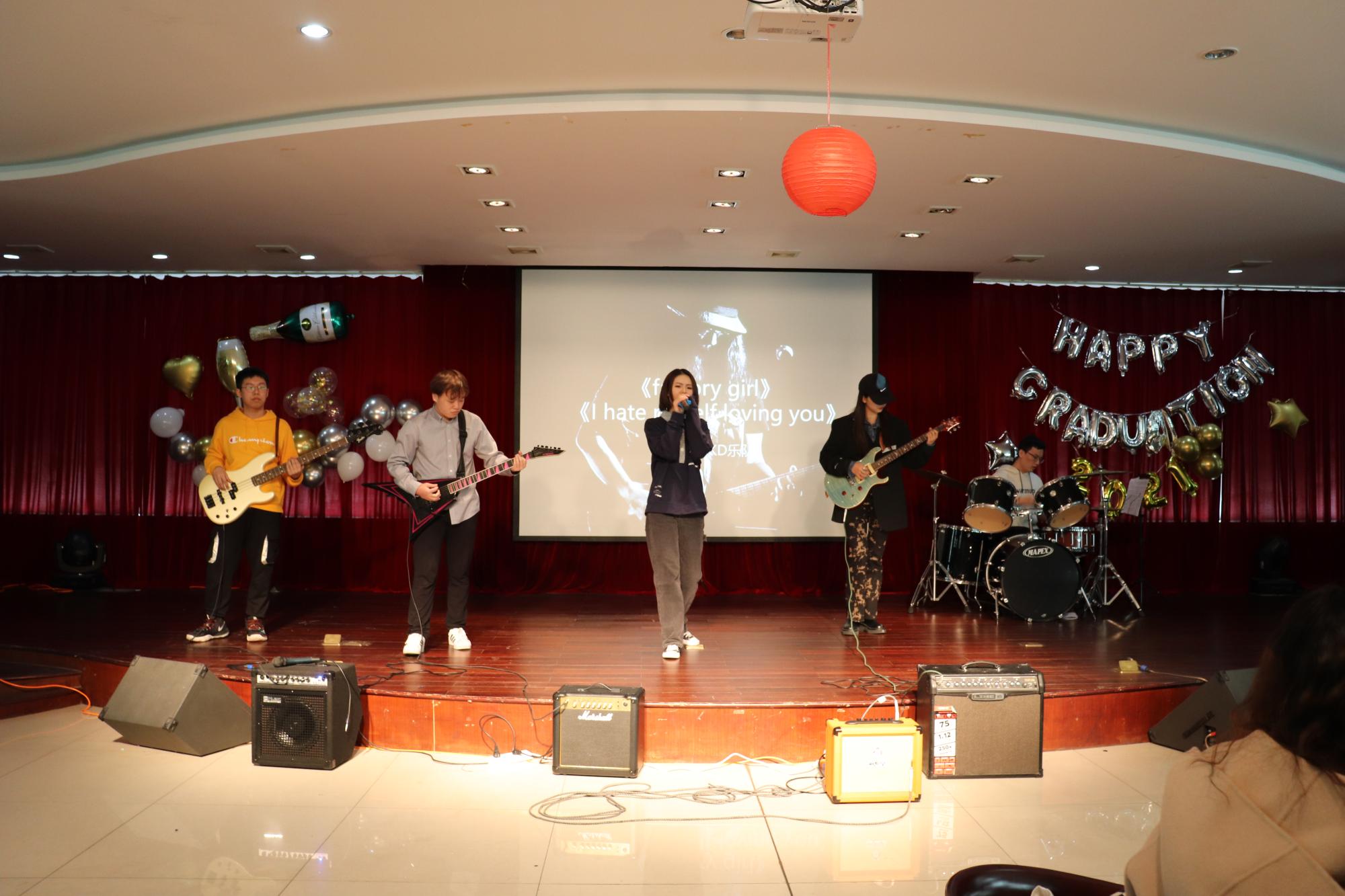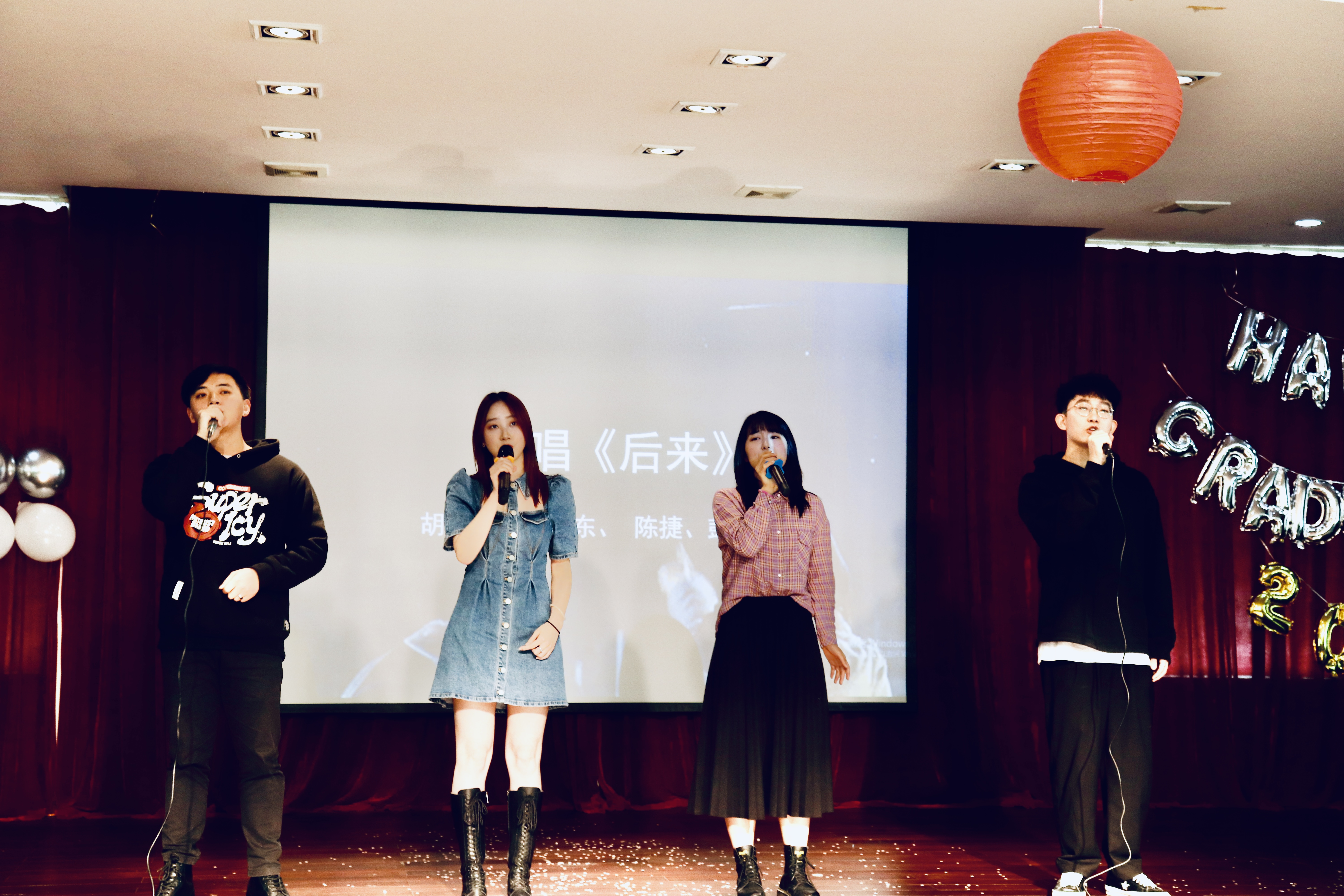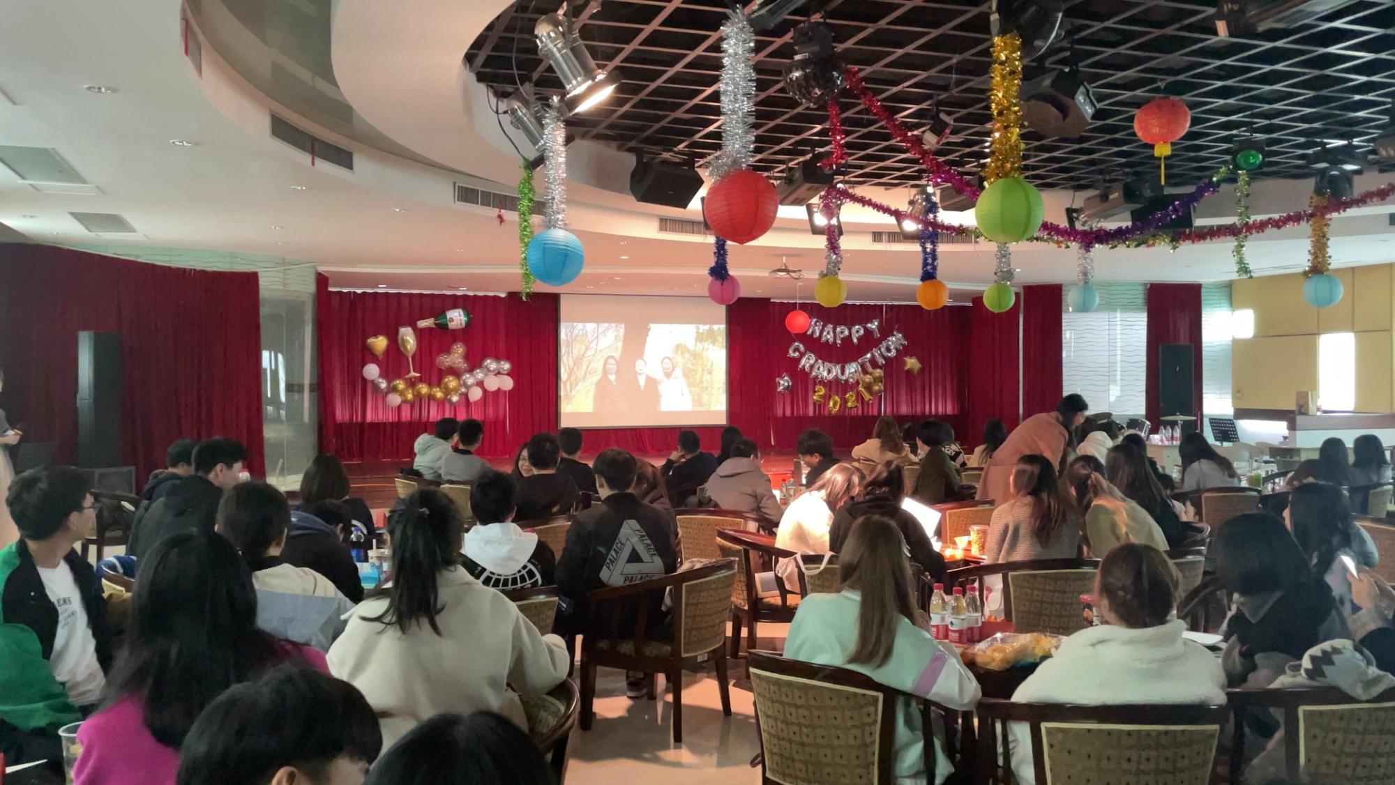 研究生共聚一堂,观看演出,共同度过了一个难忘的毕业之夜。