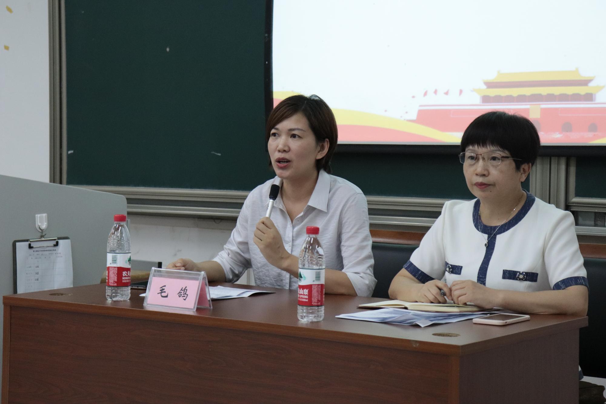全体教职工参加专题学习会,会议由党委书记胡亦琴主持。