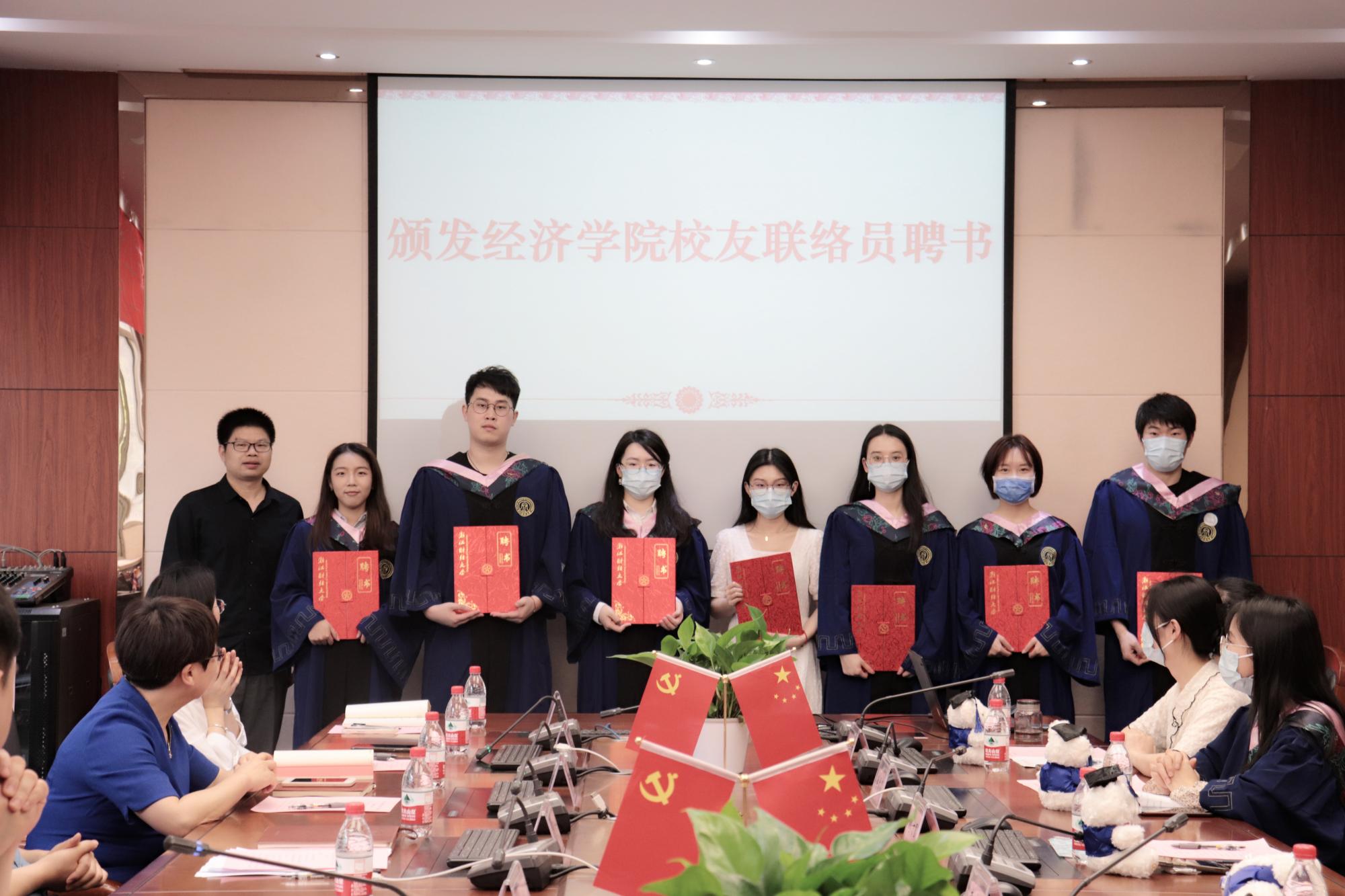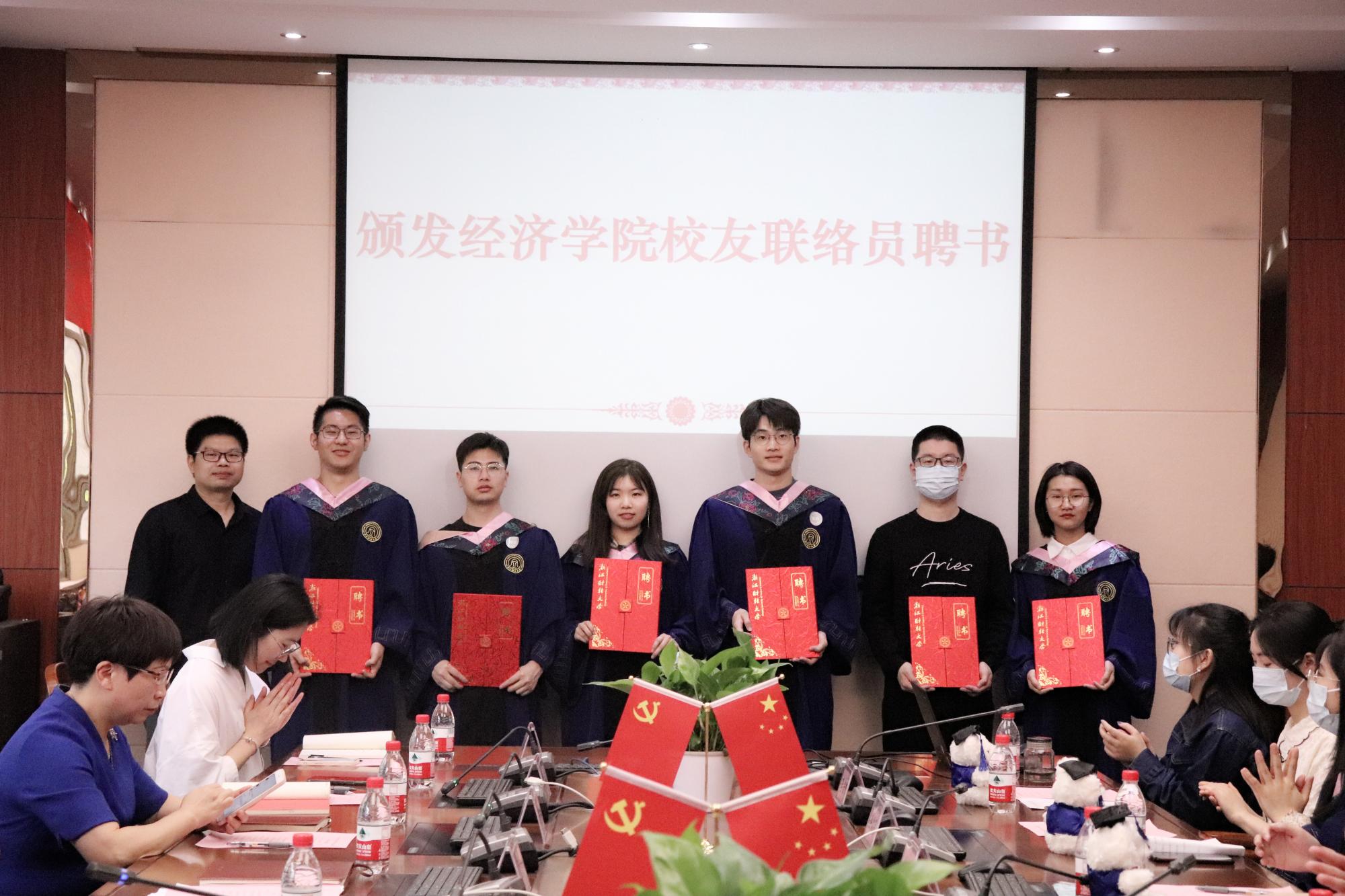 还为校友联络员颁发聘书,为卓越之星获得者、省级优秀毕业生和国家奖学金获得者颁发荣誉证书。