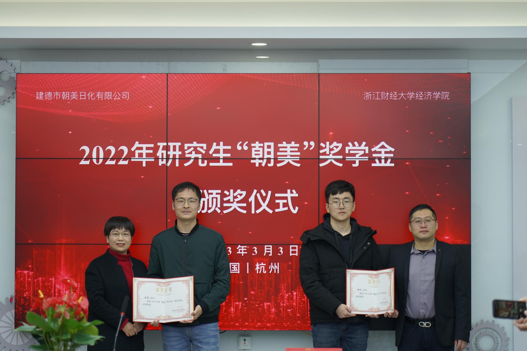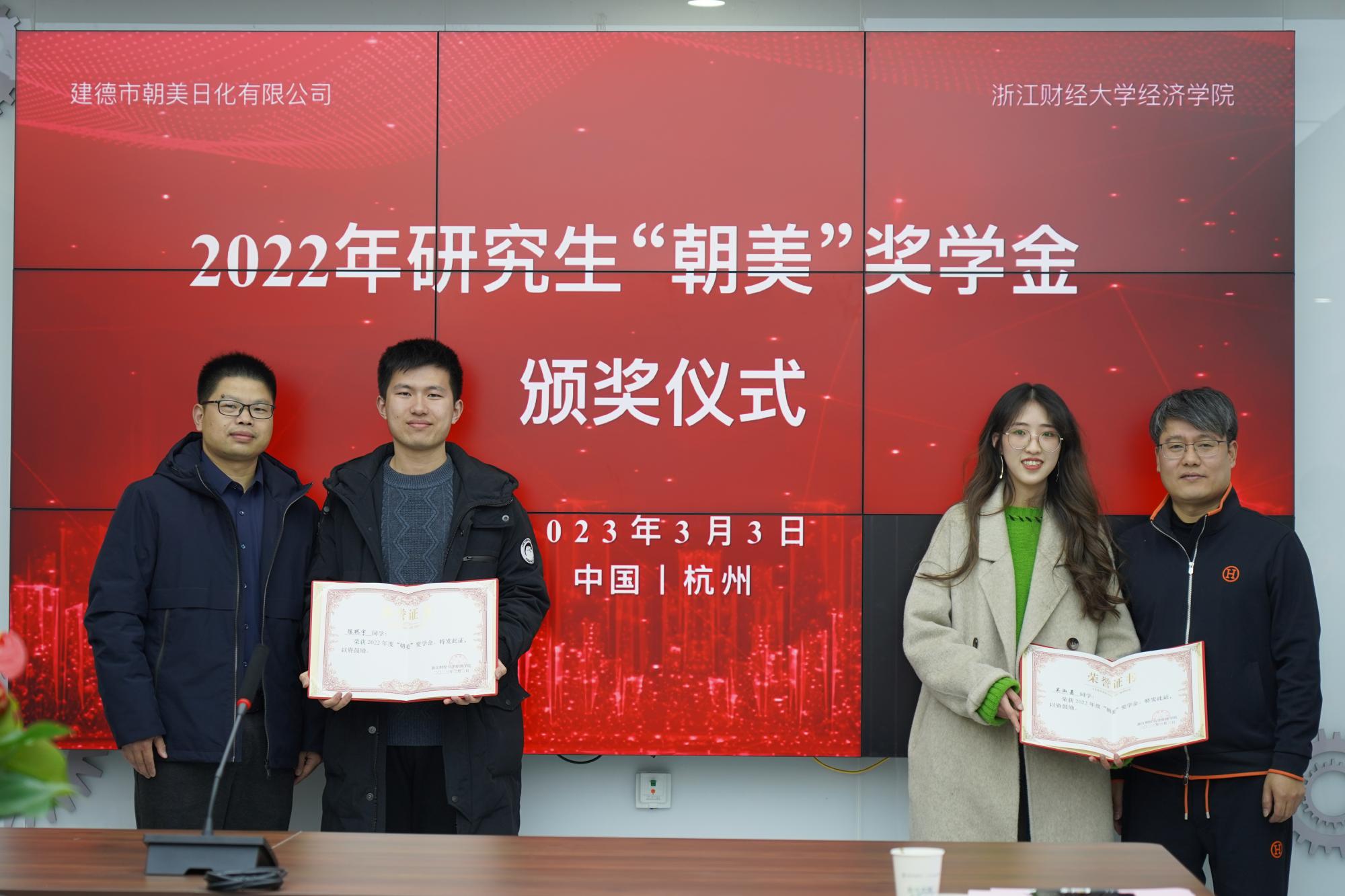 3月3日下午,首届研究生“朝美”奖学金颁奖仪式在建德市朝美日化有限公司举行。公司总经理、线上赌博平台