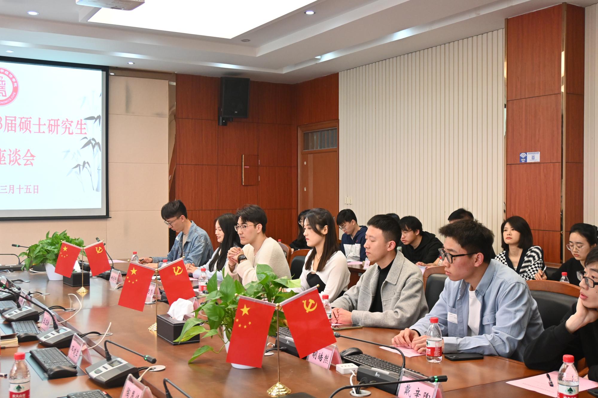 楼210会议室举行。院长王正新、党委书记胡亦琴、副院长罗俊、邓晓军、研究生秘书陶恩情,以及辅导员俞一献与16位硕士研究生代表齐聚一堂,共话经院学习生活的感悟收获,畅谈人生未来的发展规划。会议由副院长罗俊主持。