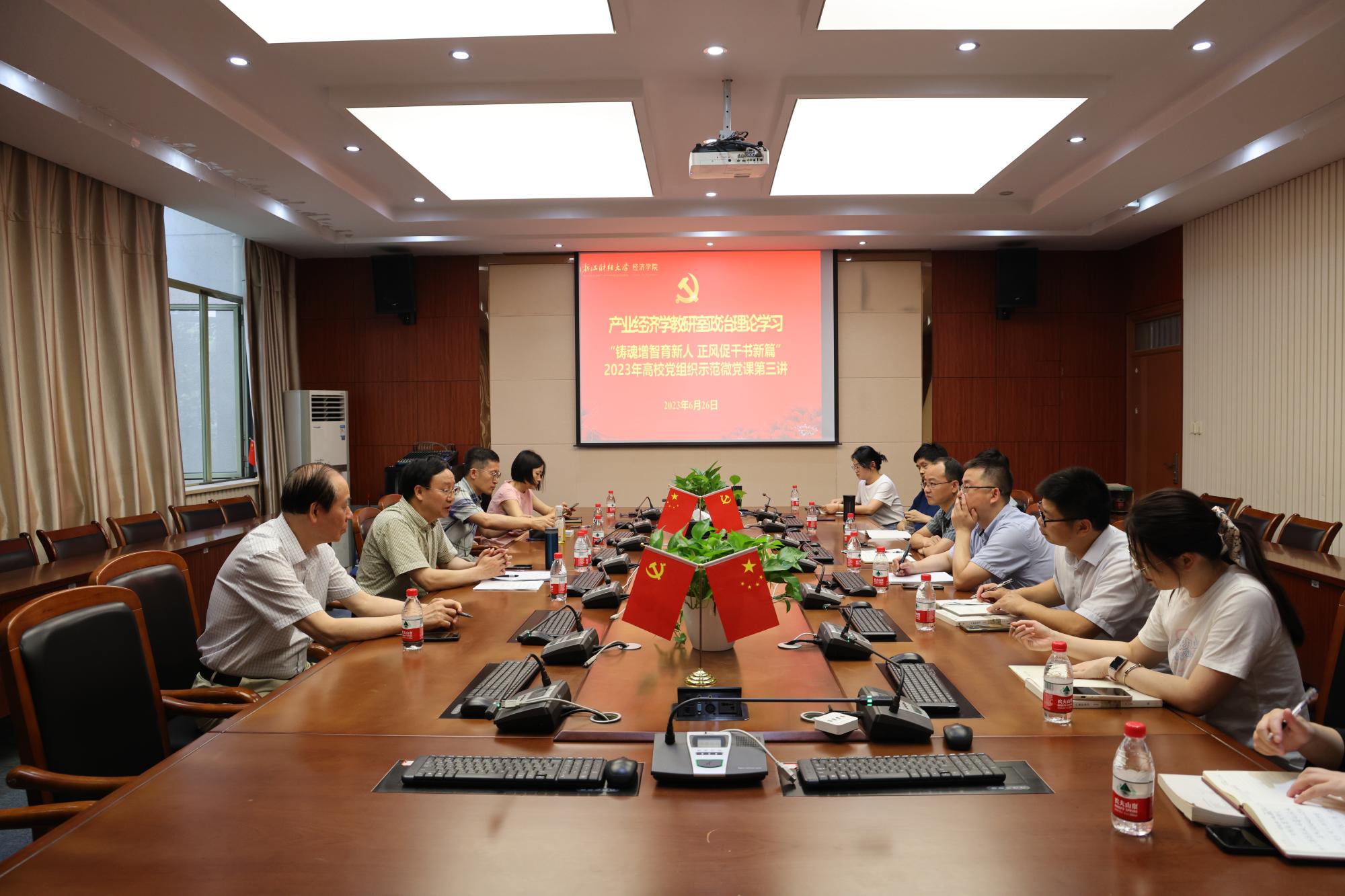 本次会议的政治理论学习主题是《铸魂增智育新人正风促干书新篇》。与会老师一起学习了2023年高校党组织示范微党课第三讲的内容,就高校教师如何成为讲好中国故事、传播中国声音的发言人,与会老师纷纷分享了自己的心得。通过本次政治理论学习,大家加深了对习近平新时代中国特色社会主义思想、习近平总书记关于教育的重要论述的理解。