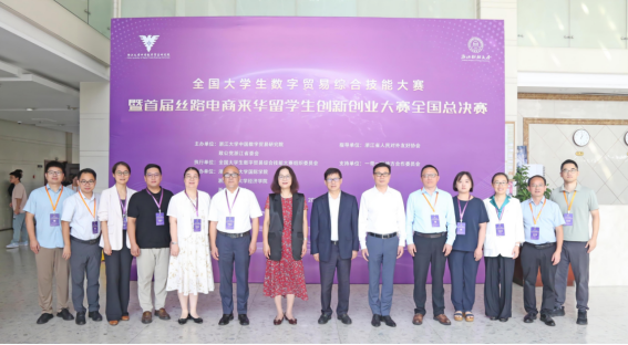 下沙校区举行。浙江省人大常委会委员、致公党浙江省委会副主委裘云庆,全国政协委员、副校长郑亚莉,全国大学生数字贸易综合技能大赛秘书长易建安出席总决赛开幕式。