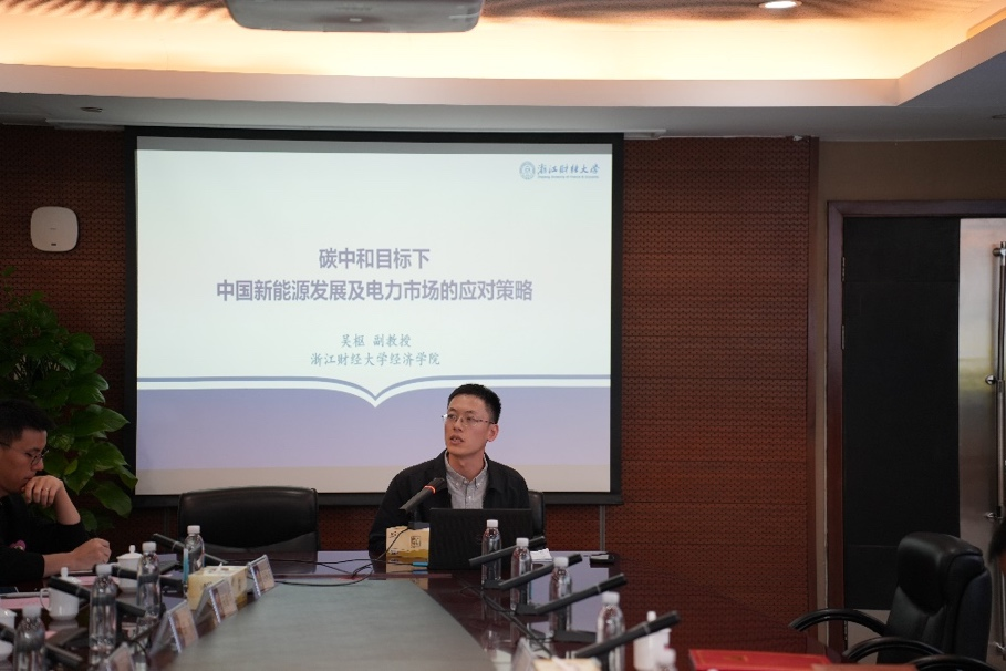 吴枢副教授在会上分享了《碳中和目标下中国新能源发展及电力市场的应对策略》,提供了紧跟时势政策、聚焦新兴领域的深刻见解和宝贵启示。