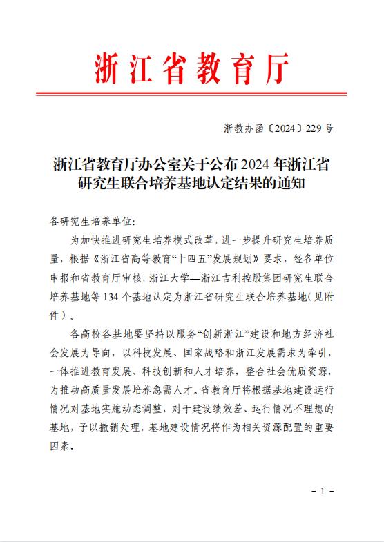 近日,浙江省教育厅办公室发布《关于公布2024年浙江省研究生联合培养基地认定结果的通知》,线上赌博平台