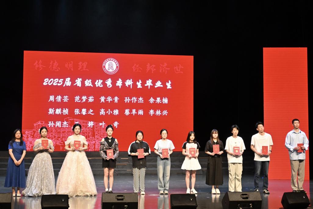 领导为省级、校级优秀毕业生及研究生优秀毕业生颁发证书——徐丽玲副书记为省级优秀毕业生颁发证书;邓晓军副院长为校级优秀毕业生颁发证书;王岭副院长为研究生优秀毕业生颁奖。鲜红的证书映衬着学子们的笑颜,为多年奋斗画上璀璨注脚。