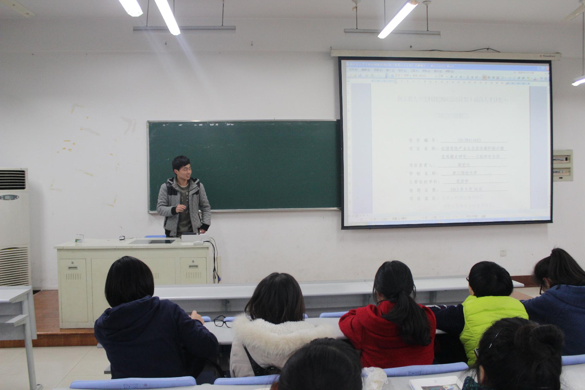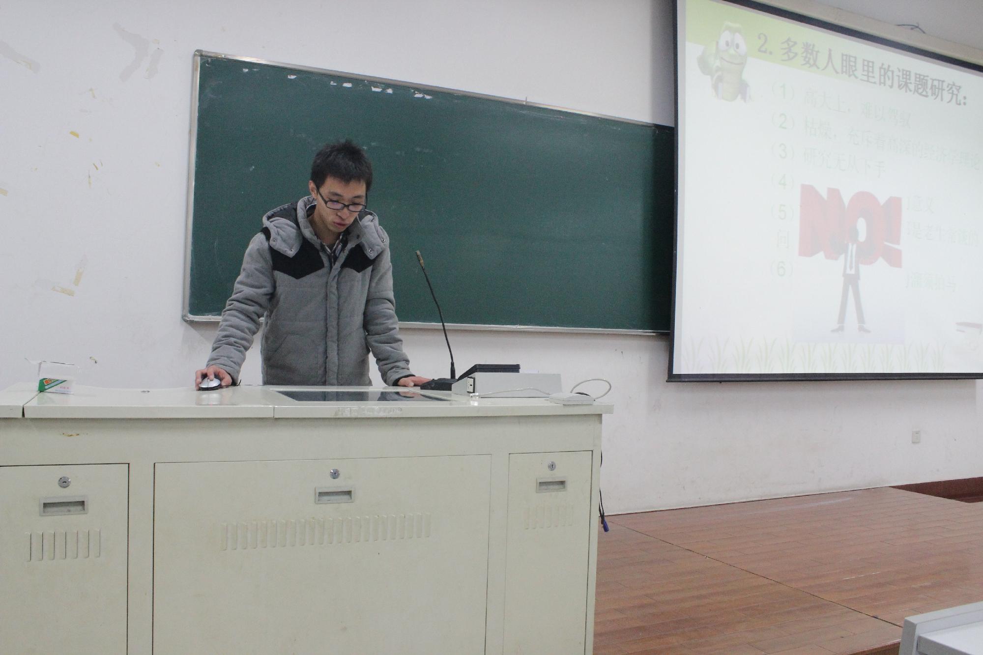 接下来,11国贸2班高世达学长为我们介绍了他申报课题的心得并展示了自己发表在学术期刊上的论文。“在做课题时,多与导师交流、多深入思考、多看学术性杂志等等,都是必不可少的。”