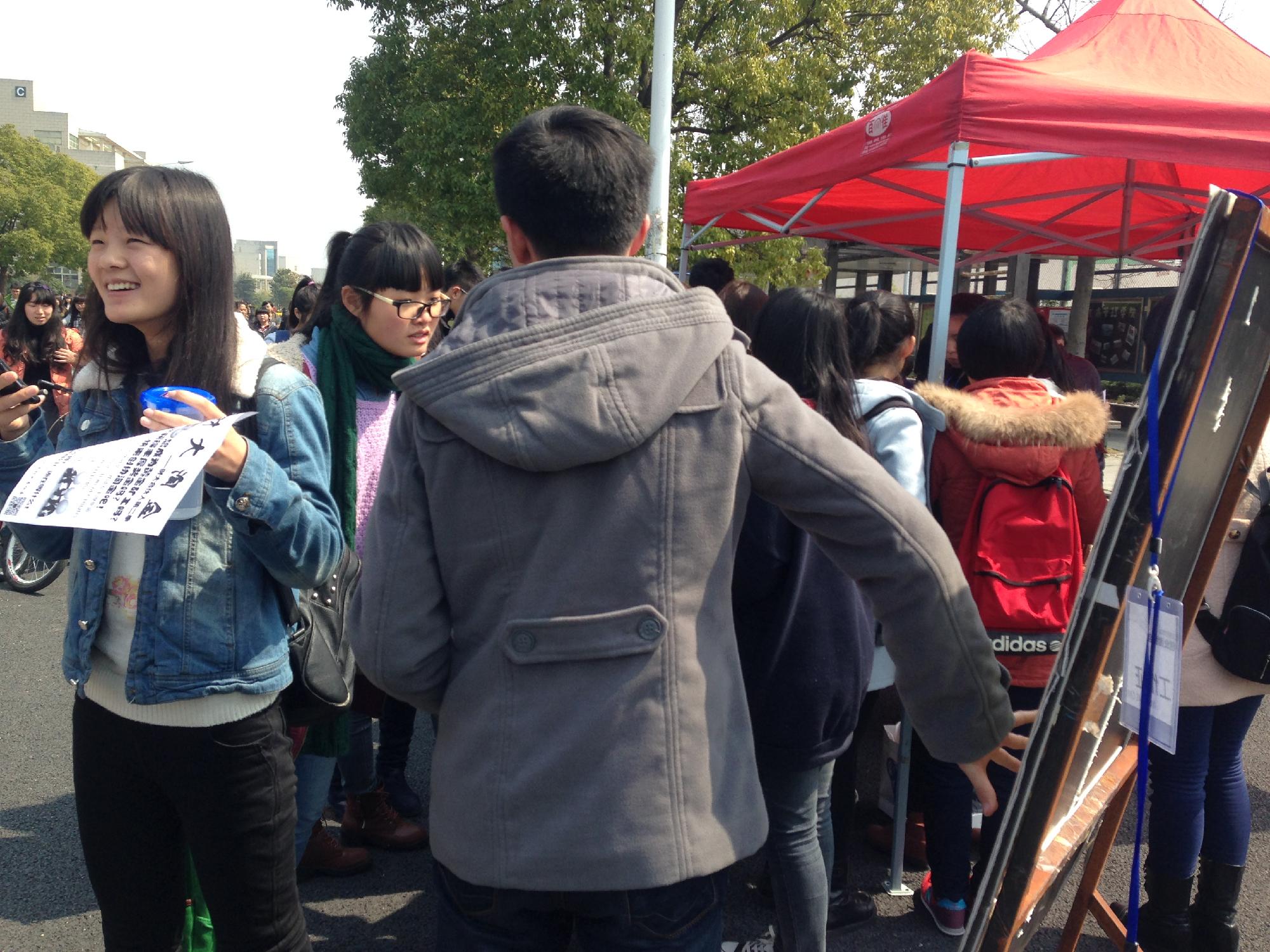 决赛中也有利用“流动摊位”的团队,他们周转在下沙各大高校,选择接触更多的人群来加大销售范围。