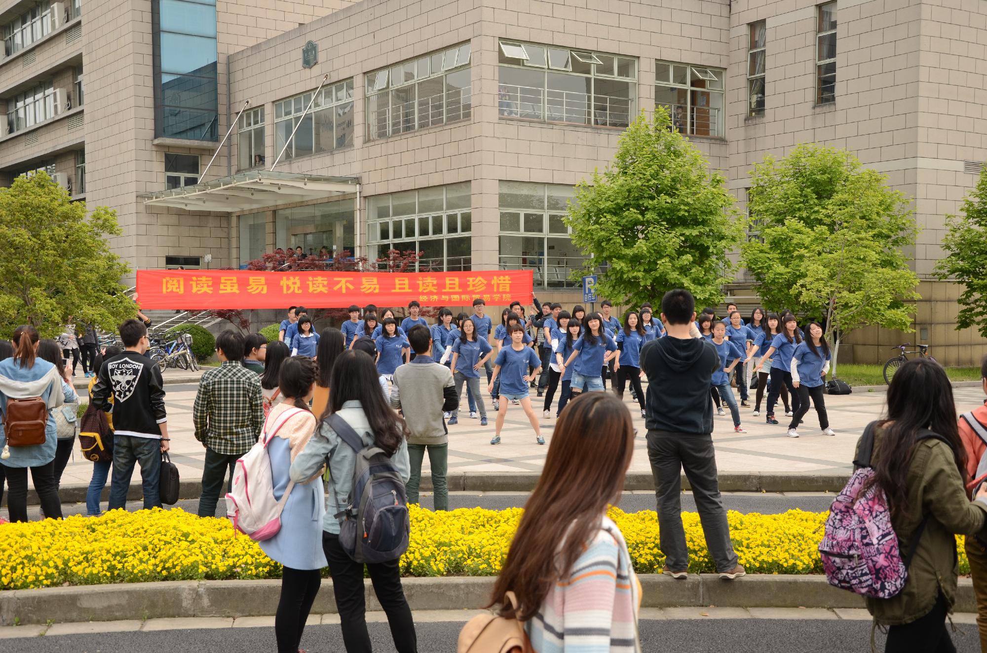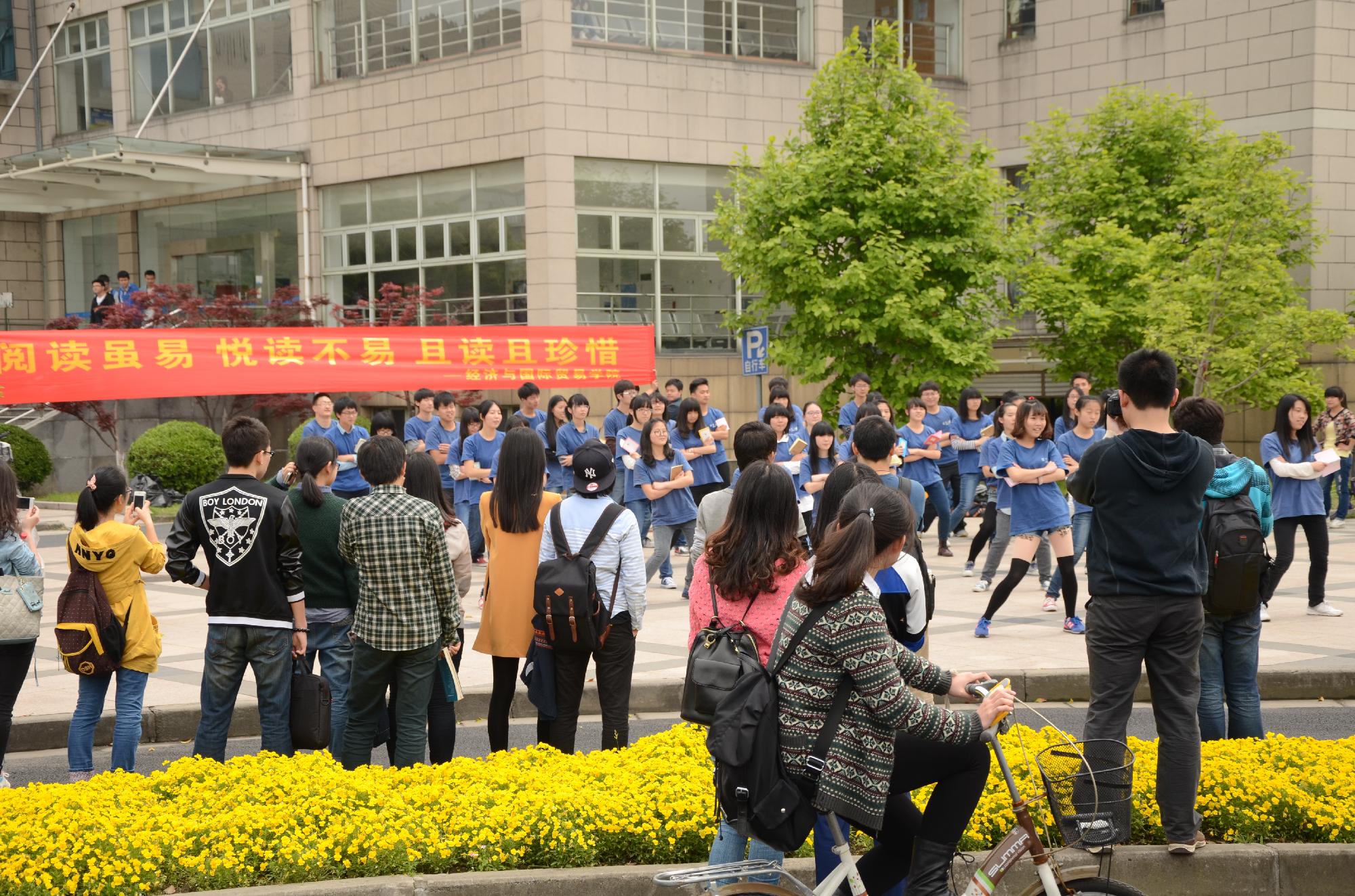 为什么会有这次的“快闪”活动?教学楼前的“阅读虽易,悦读不易,且读且珍惜”的横幅很好的回答了这个问题。原来,今天是世界读书日,线上赌博平台
