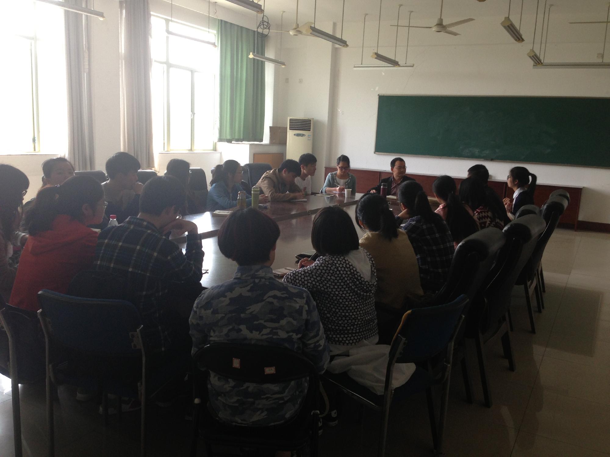 楼313会议室召开学习委员座谈会,柴志贤副院长主持会议,陈秀琴、高晓菁老师以及11-13级各班学生代表参加了座谈。