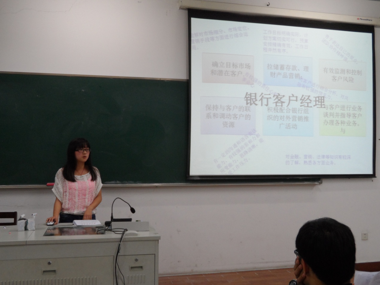 此次共有13位同学参赛。比赛分为职业规划类和创业规划类两部分,选手们主要围绕社会现状、职业前景、自我认知等方面进行四分钟的主题陈述,并运用霍兰德职业兴趣测评及SWOT分析法分析了自己适合的职业类型和内外环境的优劣势。精美的PPT以及清晰的演讲思路充分表明了同学们对未来的明确规划。最后,杨忍老师对同学们的陈述做了总结并对每位同学的规划提出了自己的建议。