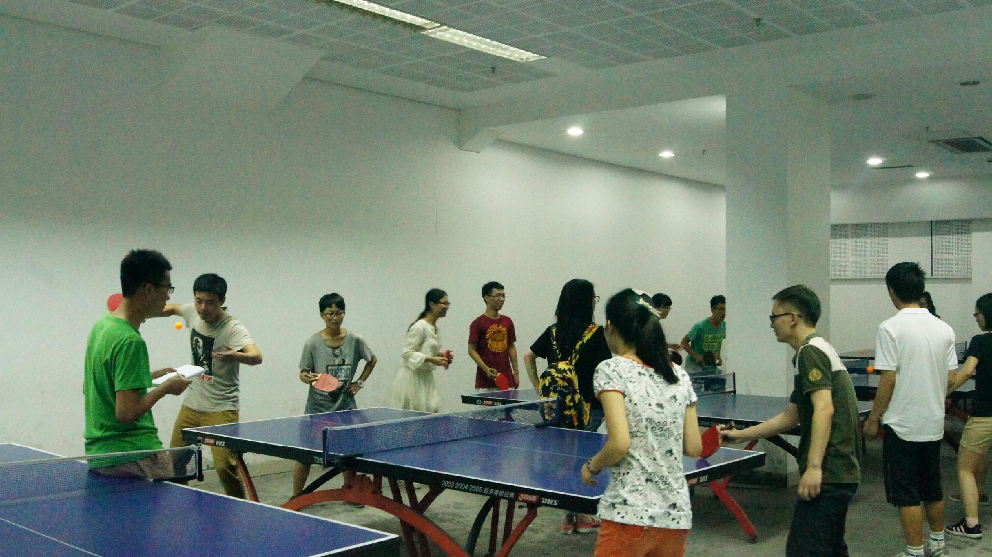 楼311教室举行,柴志贤老师和崔大树老师整装待发,一改平日课堂上严谨的形象,纷纷使出自己的看家本领。尽管只是切磋球技的友谊赛,但是谁也不放松,比赛一度进入白热化阶段。师生默契组合的混双比赛最终成为此次比赛的压轴大戏。