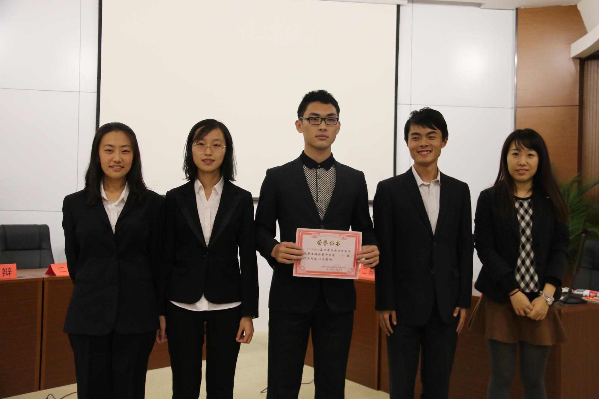 本年度新生辩论赛的桂冠。14国贸2班收获亚军。本场比赛之前,14国民经济班与14国贸1班就辩题——“爱人与被爱哪一个更幸福”展开了季军争夺赛,14国民经济班最终赢得了比赛,跻身三甲,邵慰老师针对辩论双方的表现进行了精彩点评。