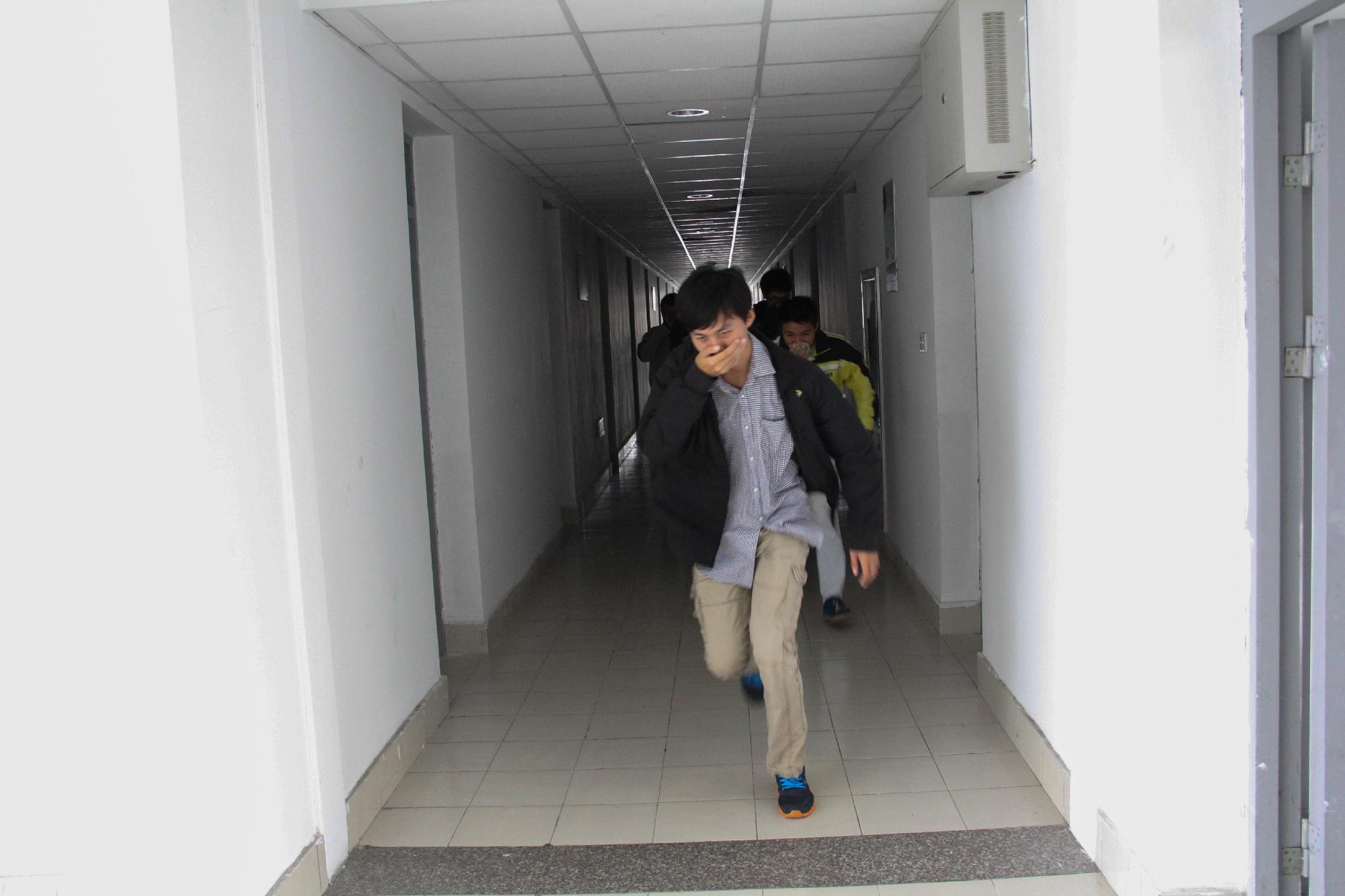 早上九点,一声急促的警报声响起,不少同学从梦中被惊醒。大家迅速做出反应,双手捂住口鼻、弯腰、靠墙,在楼层引导员的指挥下快速撤离宿舍楼到达指定地点。整个应急演练活动规范、有序、紧凑、安全、高效,老师和同学们临危不乱,组织有序,逃生时没有发生拥挤、踩踏和碰伤学生的事故,整个过程仅用了4分钟。