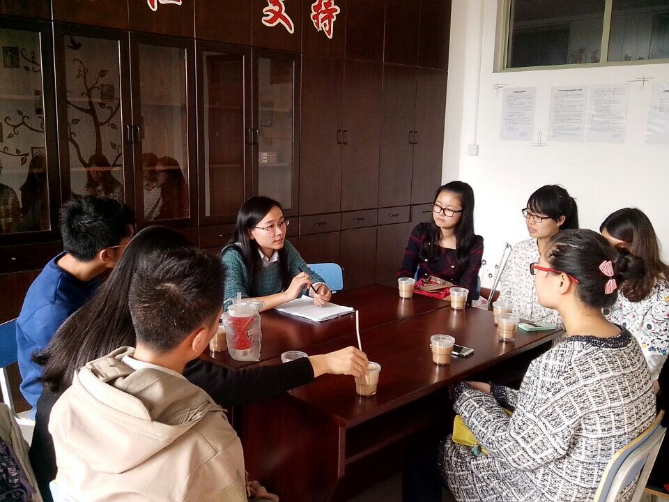 心理辅导员谭立娟和14级各班心理委员们一起探讨同理心在日常生活和工作中的运用。