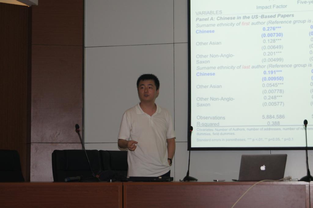 黄炜教授报告了他最近与导师Freeman合作的一篇新论文“China's "Great Leap Forward" in Science and Engineering”的核心内容。这篇文章在美国国民经济研究局NBER网站挂出后,立即引起了纽约时报以及中国的参考消息等报刊的重视,放在显著位置报告其研究成果。