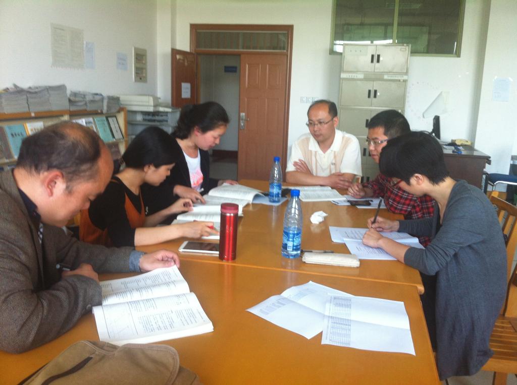 资料室,围绕如何摆正数学在经济学教学中地位展开教研活动。本次活动由教研室主任郑恒老师主持,共7位教师参加了本次活动。