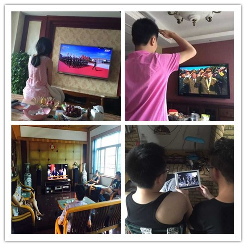 上午10点,盛大的阅兵式开始,当军乐奏响,全体人员肃立高唱国歌,爱国之情迅速被点燃,当空中护旗方队呼啸而过,同学们热血沸腾、欢欣鼓舞,当威武的中国人民解放军部队、精良的武器装备组成的一个个整齐的方阵叱咤而来、铿锵而去,活动现场掌声雷鸣。观看阅兵结束后,同学们带着难以抑制的兴奋之情开始了讨论,大家各抒己见、现场气氛活跃。大家纷纷表示,阅兵式让我们无不从内心深处感到激动和震撼,看到祖国如此强大,由衷的感到自豪和骄傲。