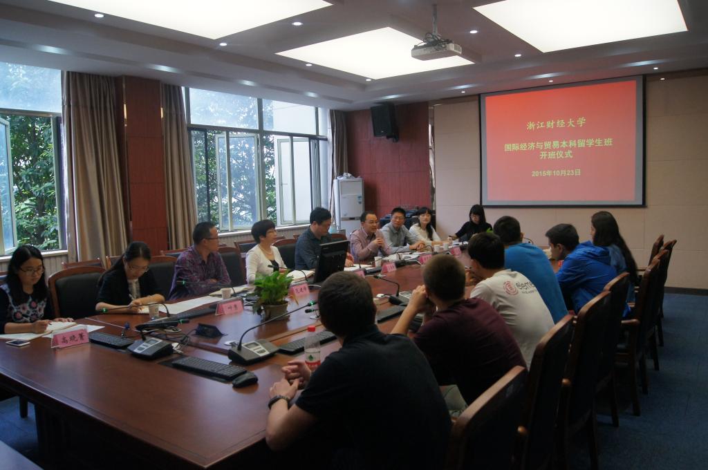 10月23日上午,线上赌博平台首届国际经济与贸易专业本科留学生班开班仪式在经贸线上赌博平台