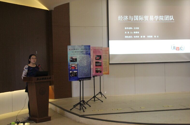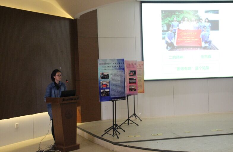 共有本科生队伍9支,“知行浙江”研究生社会实践队伍13支,总参与人数超过100人次,参加队伍覆盖面广,跨年级、跨专业特色突出。交流会首先由研究生代表陈雁南就“杭州跨境电子商务综合实验区”运营现状调查研究向大家进行介绍,主要讲解如何确定课题,并向同学们详细讲述了关于暑期社会实践选题方面的建议,令同学们收益颇深。紧接着赴衢州“青春使命·食品安全”实践服务团代表张雯燕从工作内容、工作环境和工作成果三方面与在场的同学分享了他们的经历。“在杭大学生互联网学习与创新创业”实践队代表罗妮和大家分享了在杭大学生创新创业事业蓬勃发展的盛况。此外,赴仙居“传承红色精神践行青春使命”实践团代表和赴诸暨“寻求现代女性领导之路”实践团代表也与大家一起分享了他们的收获和心得。分享者们以独特的形式讲述了自己的暑期社会实践经历,丰富的实践内容,一幅幅精美的照片,一个个深入人心的故事,以及深刻的实践心得无不感染着在场的每一位听众。