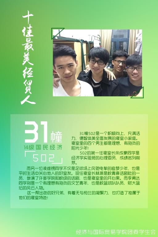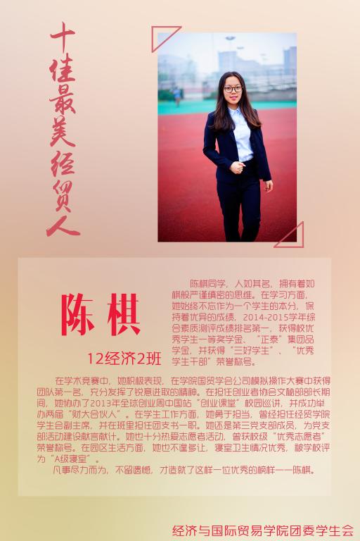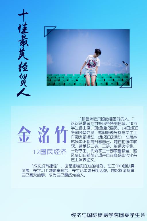 学风建设系列活动之一,通过深入挖掘身边的先进典型和优秀事例,充分发挥朋辈教育作用,在全院营造了向上、向学、向善的良好氛围,激励同学们向榜样学习,做一个敢拼搏、勇于追求梦想的经贸人!