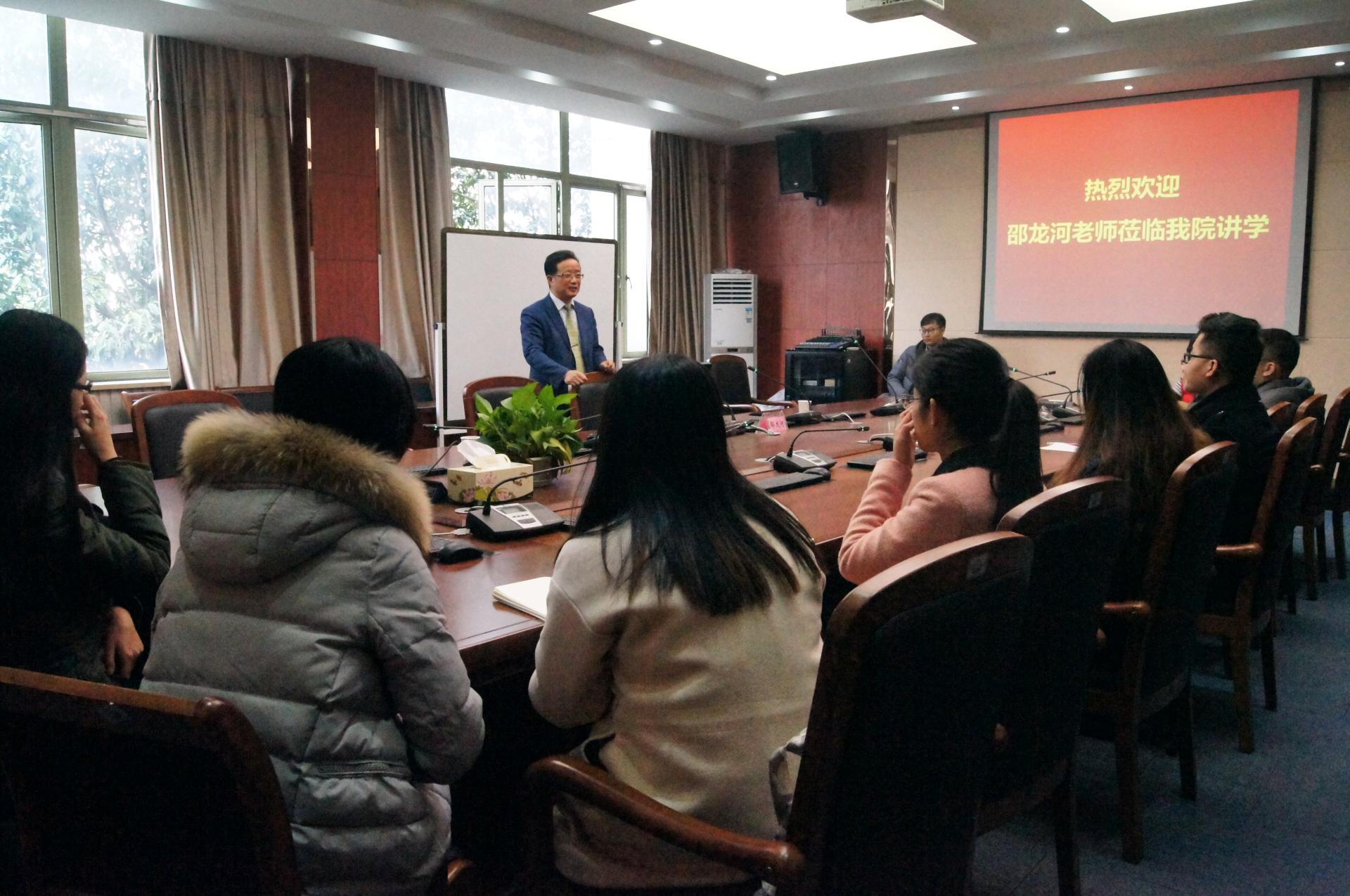 “将来毕业做什么”,邵先生以此作为开场白,吸引同学们的关注。大学生在应聘时应掌握哪些应聘技巧;如何选择适合自己的企业;如何进行职场定位;如何与团队合作,在团队中体现自身价值。关于这些大学生普遍关心的问题,邵先生做出了细致入微的解说。