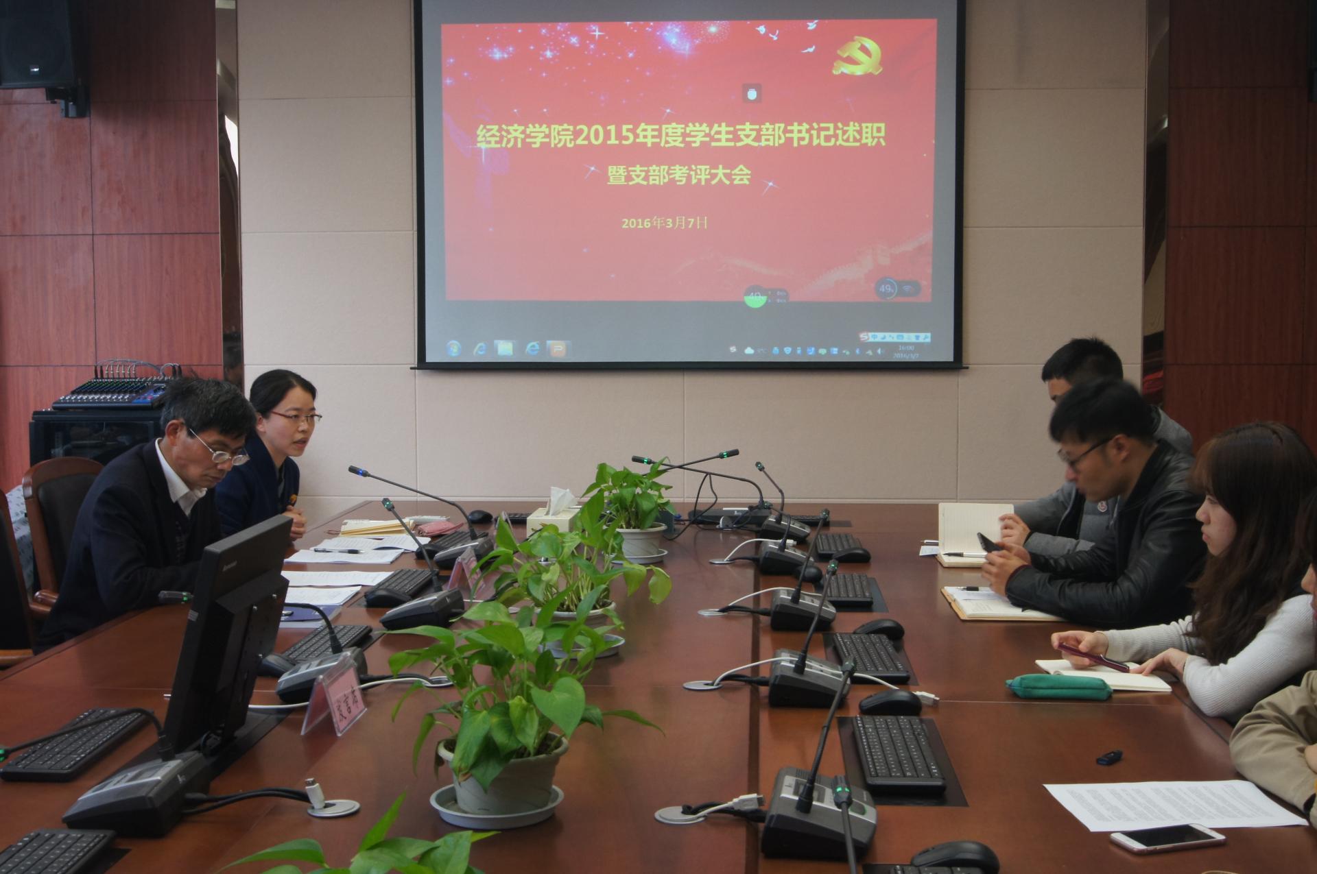 楼210室召开了2015年度学生支部书记述职暨支部考评大会。会议由党总支副书记叶秀主持,党总支书记沈水法、各学生支部书记和部分党员群众代表参加了会议。