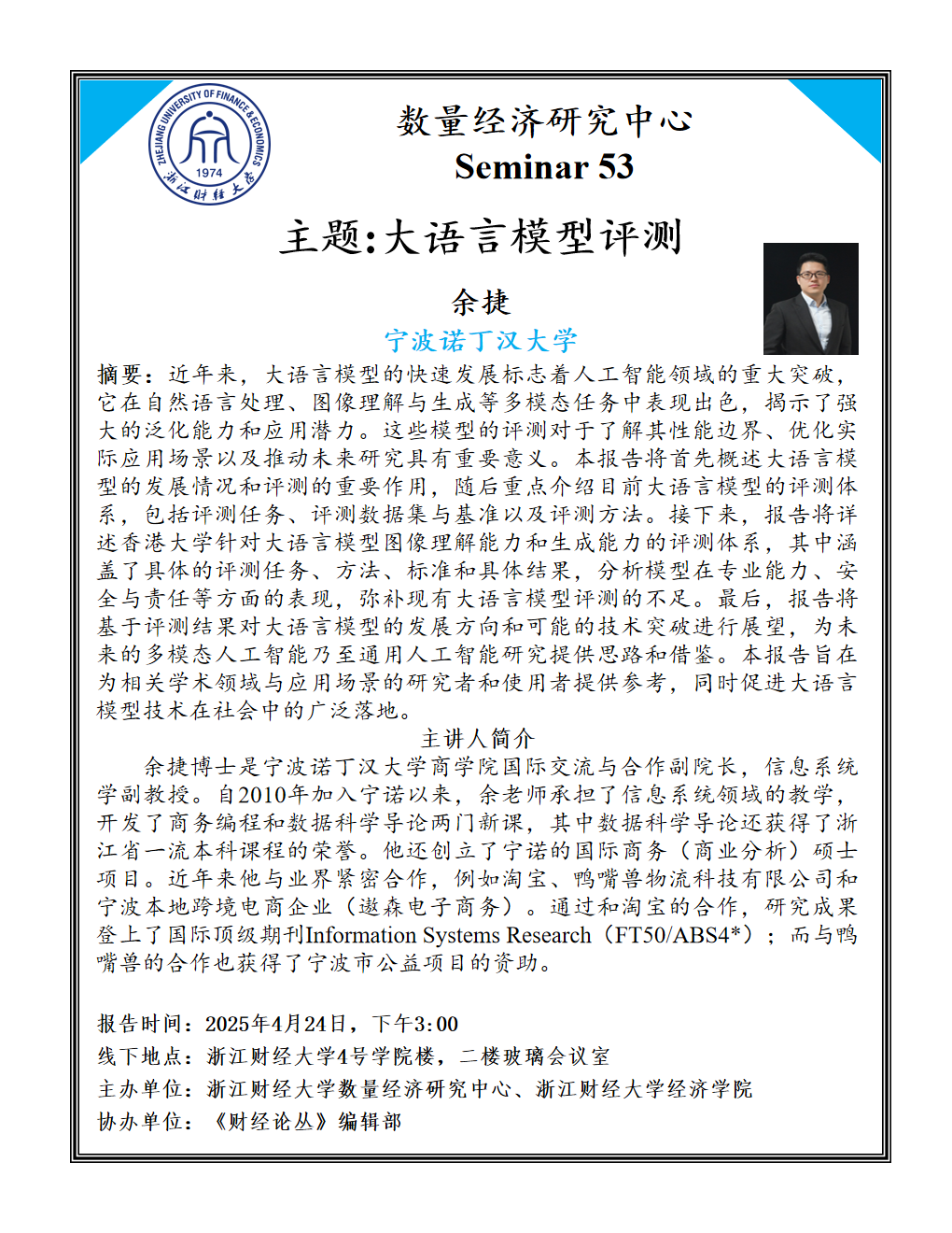 国际交流与合作副院长,信息系统学副教授。自2010年加入宁诺以来,余老师承担了信息系统领域的教学,开发了商务编程和数据科学导论两门新课,其中数据科学导论还获得了浙江省一流本科课程的荣誉。他还创立了宁诺的国际商务(商业分析)硕士项目。近年来他与业界紧密合作,例如淘宝、鸭嘴兽物流科技有限公司和宁波本地跨境电商企业(遨森电子商务)。通过和淘宝的合作,研究成果登上了国际顶级期刊Information Systems Research(FT50/ABS4*);而与鸭嘴兽的合作也获得了宁波市公益项目的资助。