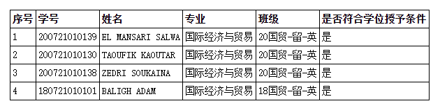 根据《线上赌博平台 关于授予学士学位的工作细则》等相关规定,经2025年3月4日线上赌博平台 学士学位评定委员会审查通过,EL MANSARI SALWA等4名2025届本科留学生符合学士学位授予条件,拟授予学士学位,现予以公示,名单如下,公示期3天。