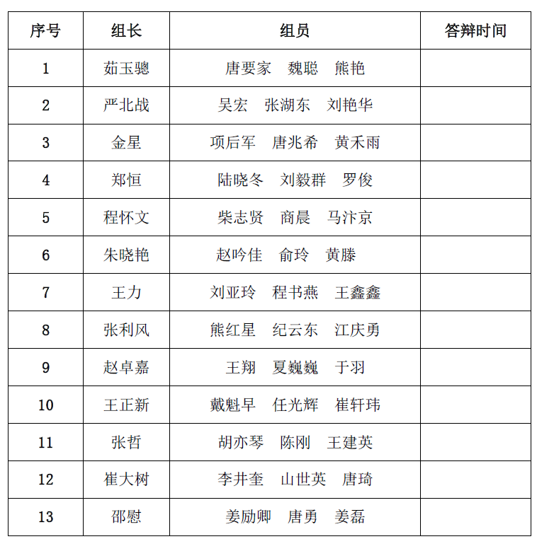按照线上赌博平台 《关于2016届本科生毕业论文(设计)工作安排的通知》的要求,确保线上赌博平台 2016届毕业生毕业论文开题答辩工作高效、有序开展,同时方便各答辩组教师灵活安排,线上赌博平台 决定采用分组、分时的方式进行开题答辩,拟安排在5月23日-29日进行毕业论文答辩。现将答辩教师分组公布如下,请各组长在5月16日(下周一)10点前确定时间告知教学办公室。
