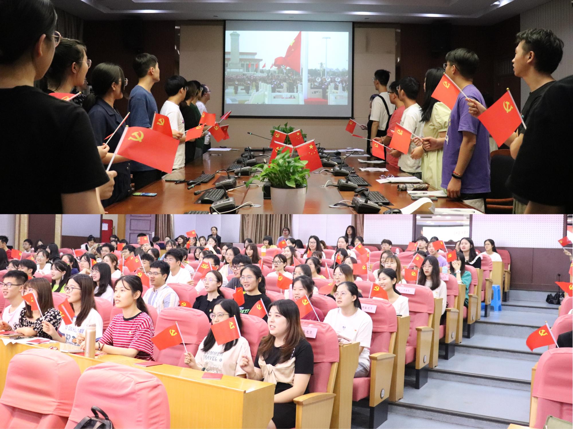 党委班子和支部书记们的带领下,老党员同新党员一起,面向党旗,举起右拳,庄严宣誓,铮铮誓言,铿锵有力。宣誓仪式进一步坚定了师生党员的理想信念,强化了担当意识,鼓舞师生党员以更加饱满的热情和充足的干劲,投入到后续的工作生活中。