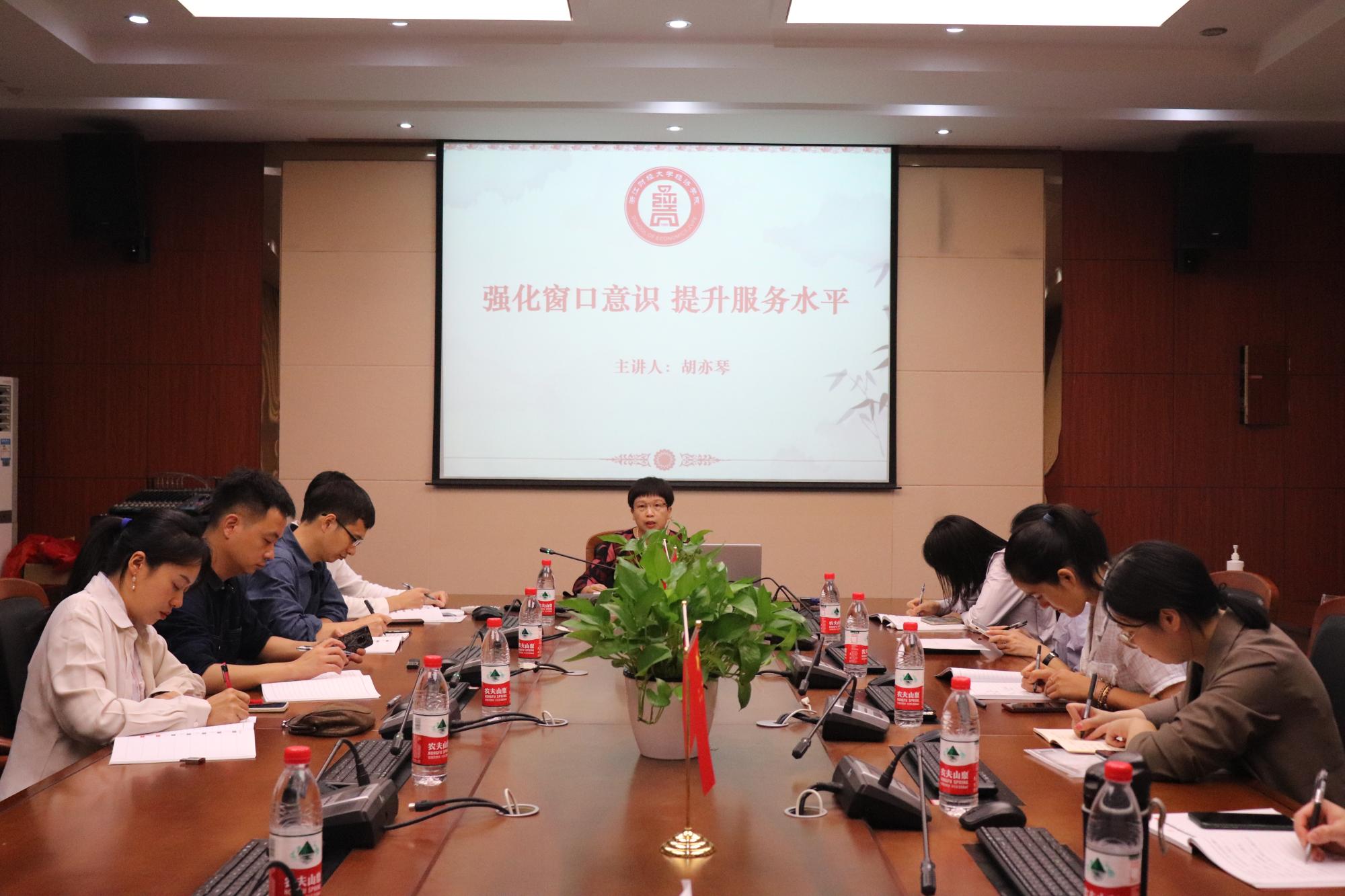 会上,胡亦琴作《强化窗口意识、提升服务水平》专题报告,她首先讲到,大家应该明确对岗位角色的认识,提升“窗口意识”,每个岗位都是面向学生、老师的重要窗口,同时也在线上赌博平台