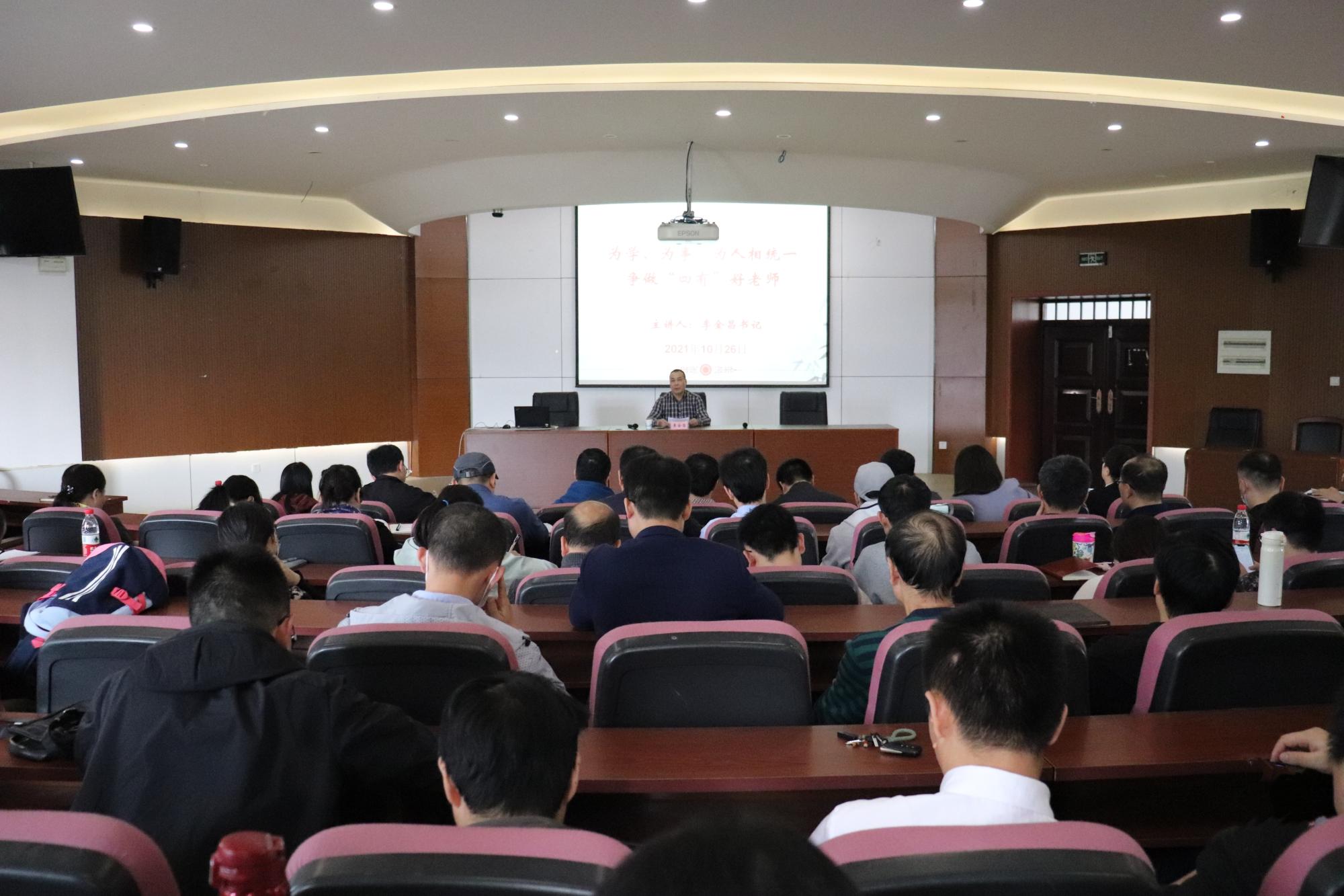 他指出,要坚定理想信念,好老师要明确意识到肩负的国家使命和社会责任,把自己的教书育人事业与国家、民族的奋斗目标、前途命运联系在一起,思考怎样为实现中华民族伟大复兴作出努力,为百年树人作出贡献;要有道德情操,先“立德”方能“树人”,教师须以德立身,以德立学,以德施教;要有扎实学识,“要想给学生一杯水,教师必须有源头活水”,身处高度信息化的新时代,需要教师不断提升和更新知识储备,自觉适应时代发展要求和学生需求;要有仁爱之心,要在学业、生活等各方面关心帮助学生。通过深入剖析和分享,激励全体教师要按照“四有”标准严格要求自己,牢记全心全意为师生服务的宗旨,勇于担当负责,积极主动作为,不忘教育初心,牢记育人使命,努力成为先进思想文化的传播者、党执政的坚定支持者,更好担起学生健康成长指导者和引路人的责任。