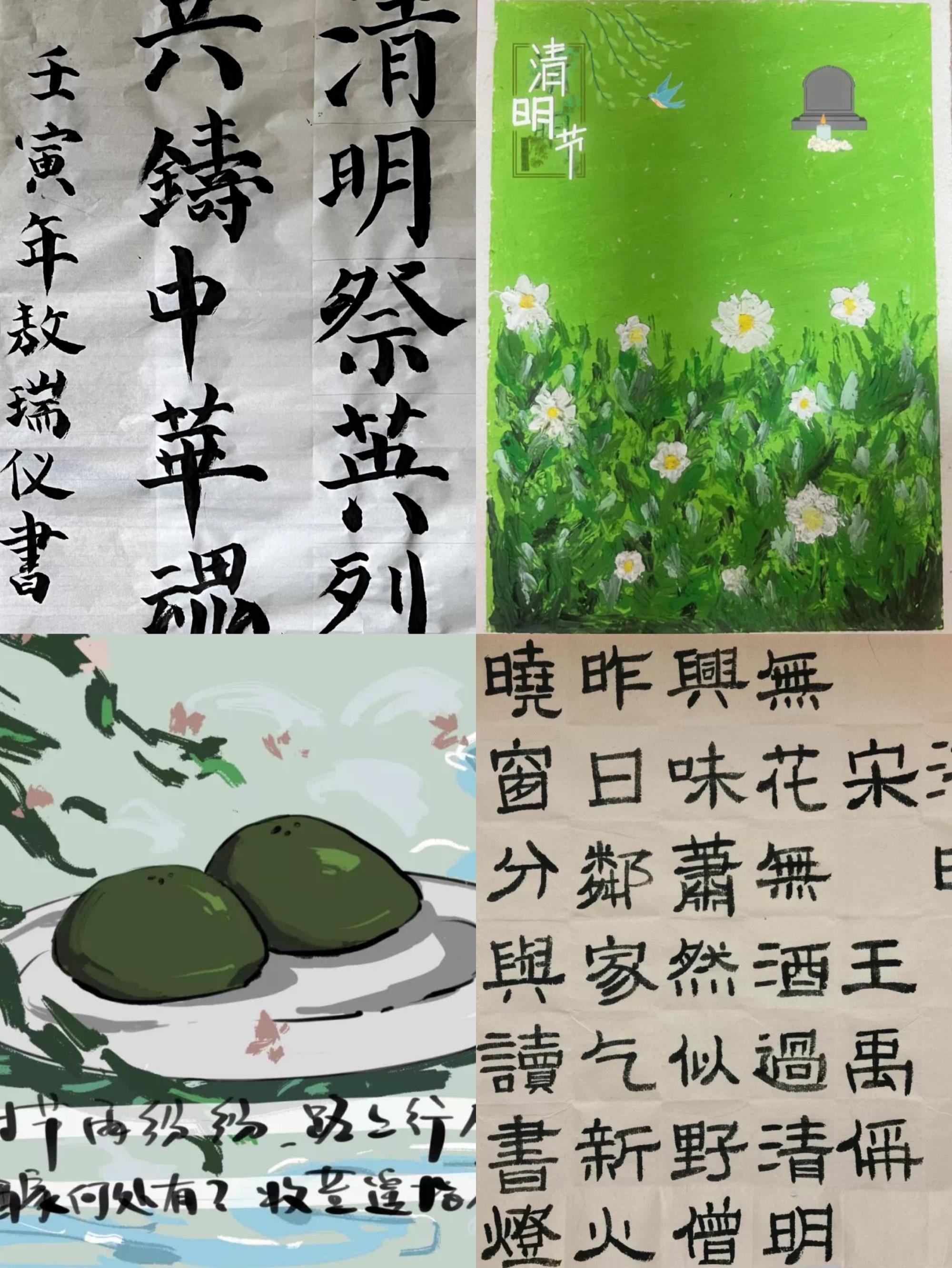 开展诗词书画、清廉故事征集活动,缅怀先辈、寄托哀思。同学们用书画、诗词、照片等形式的作品,抒发了对革命先烈的缅怀之情。