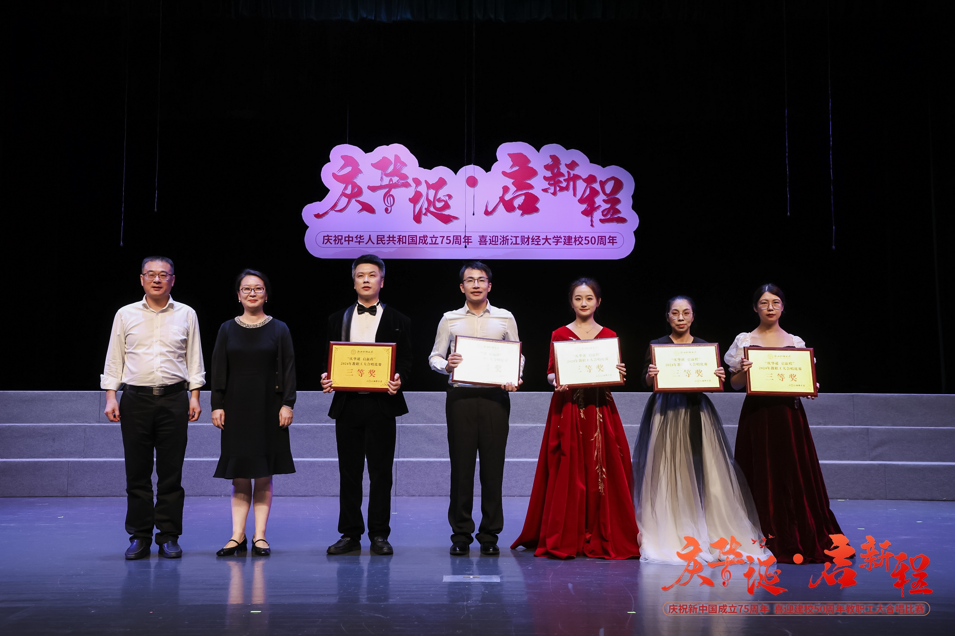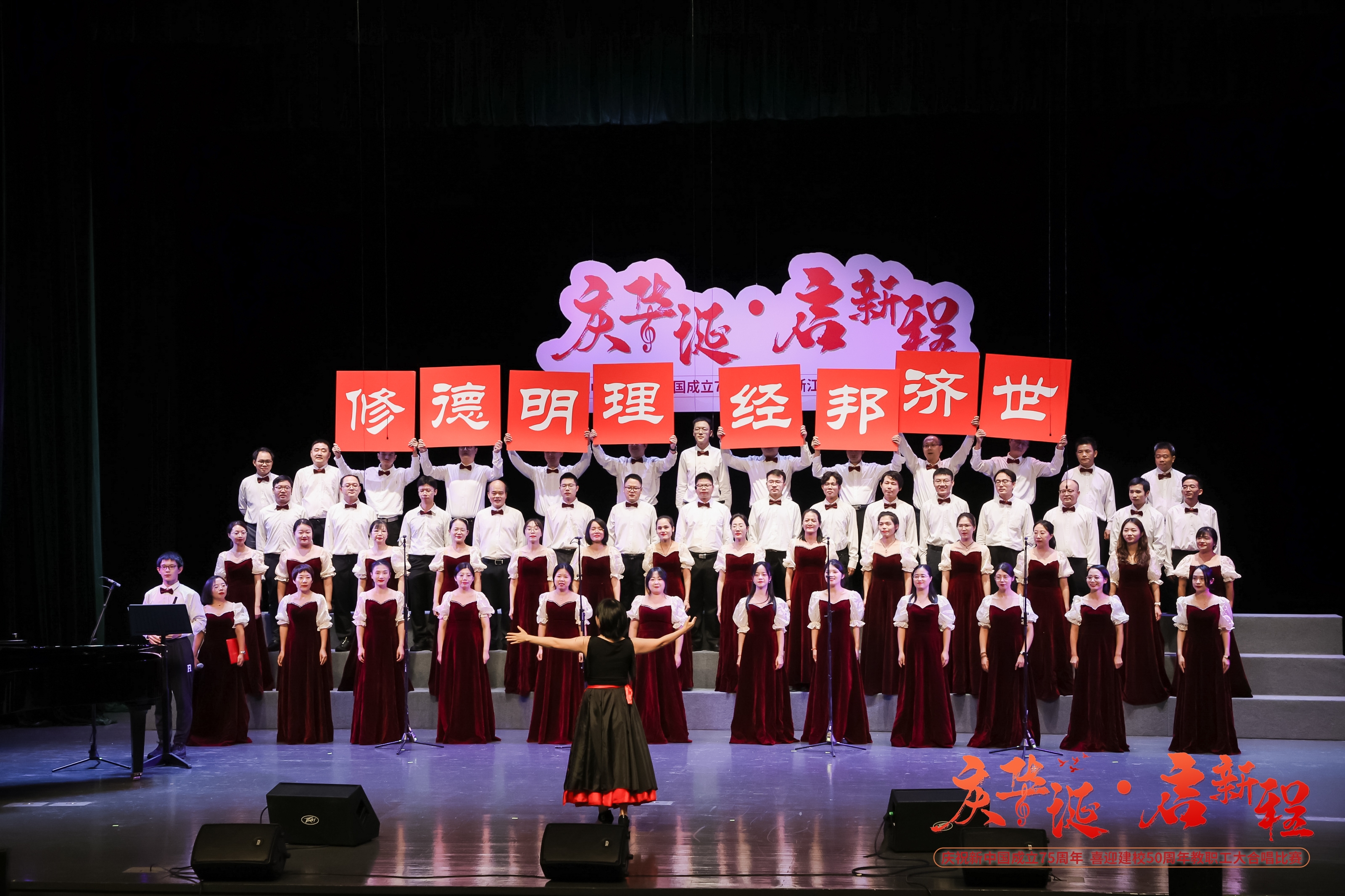 在庆祝中华人民共和国成立75周年与线上赌博平台 建校50周年的双重喜庆时刻,线上赌博平台 于10月15日在文化中心剧场举办了“庆华诞 启新程”教职工大合唱比赛。线上赌博平台 代表队以一首充满青春活力的《青春舞曲》,赢得了全场热烈掌声,荣获了三等奖的佳绩。